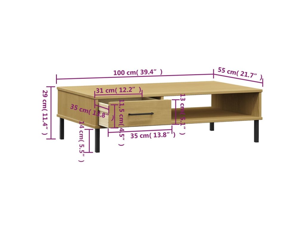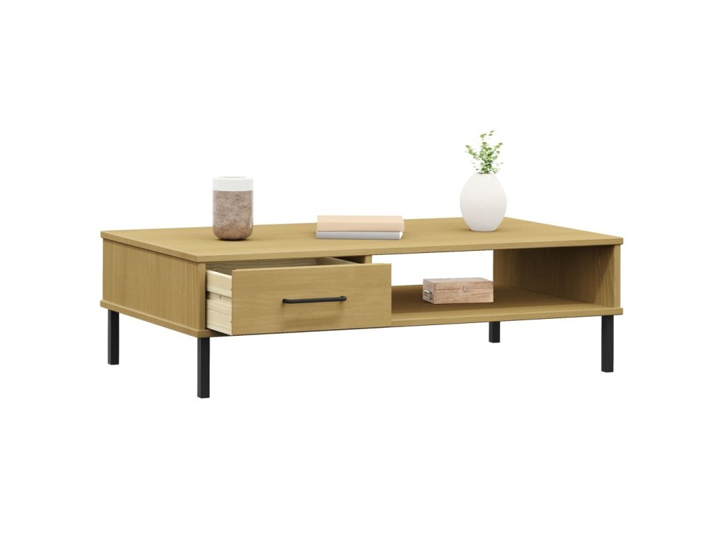 Konferenční stolek kovové nohy hnědý masivní borovice OSLO