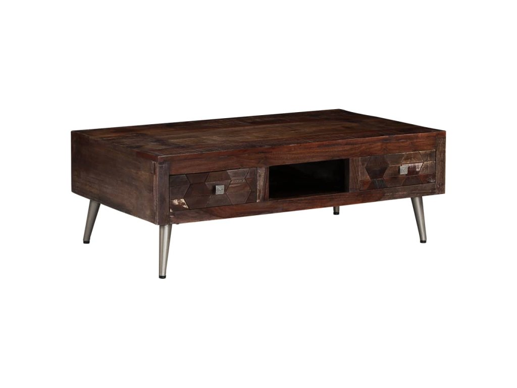 Tento dřevěný konferenční stolek z masivního recyklovaného dřeva je skvělým dekorativním a současně praktickým doplňkem do vaší domácnosti. Můžete ho rovněž použít jako koncový stolek nebo odkládací stolek.