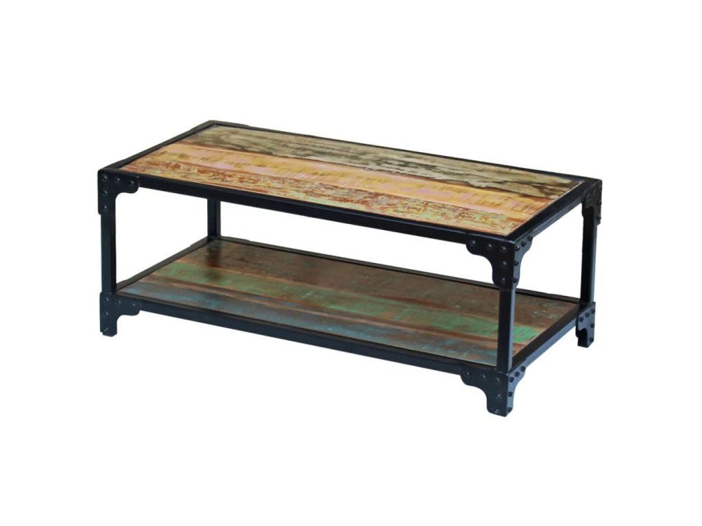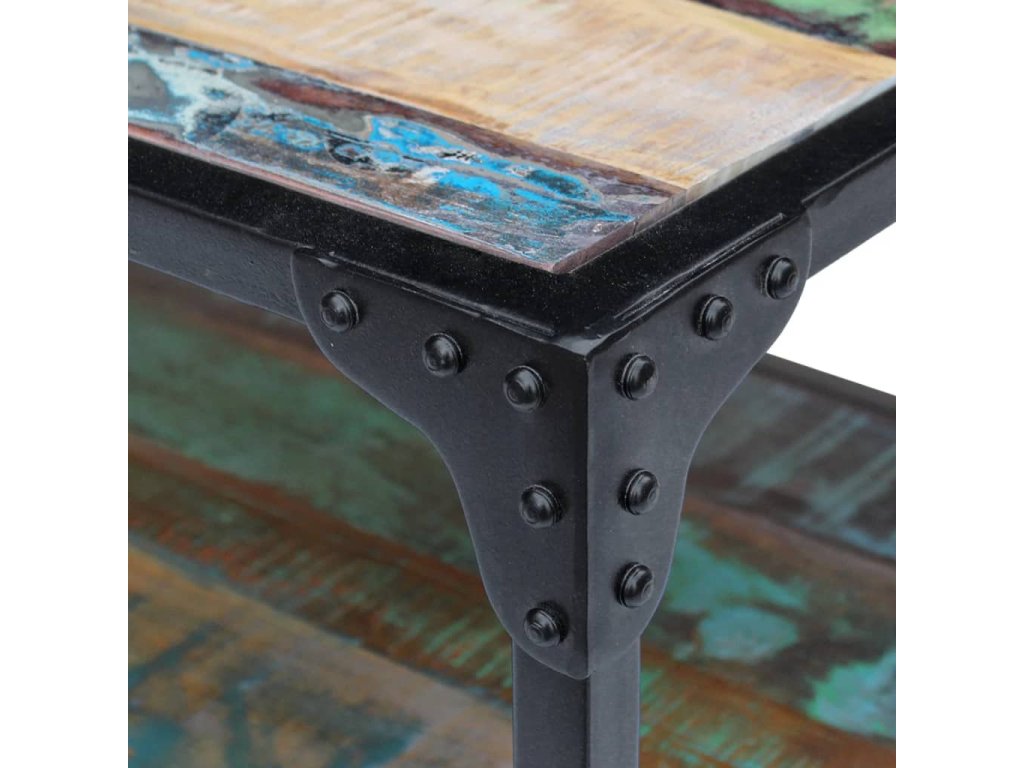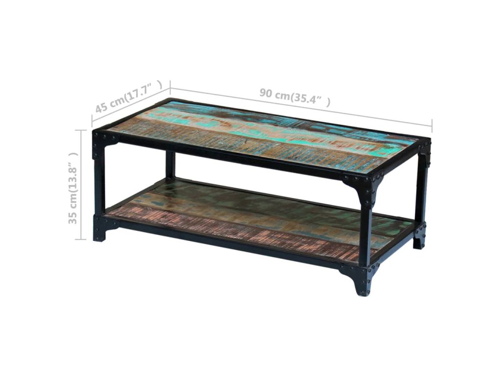 Tato konferenční stolek ve vintage stylu je vyrobená z masivního recyklovaného dřeva, stane se tedy nadčasovým doplňkem vašeho domova. Vzhledem k pevnému ocelovému rámu je odkládací stolek velmi stabilní a odolný. Horní deska nabízí stabilní a bezpečný povrch, na který si můžete odložit nápoje a nebo si zde vystavit koš s ovocem, vázy či jiné dekorace. Je vybaven třemi zásuvkami, které vám poskytnou dostatek prostoru pro uložení drobných předmětů, jako jsou klíče, poznámkové bloky a další drobnosti. Na spodní poličce najdete další místo k uspořádání vašich věcí.
