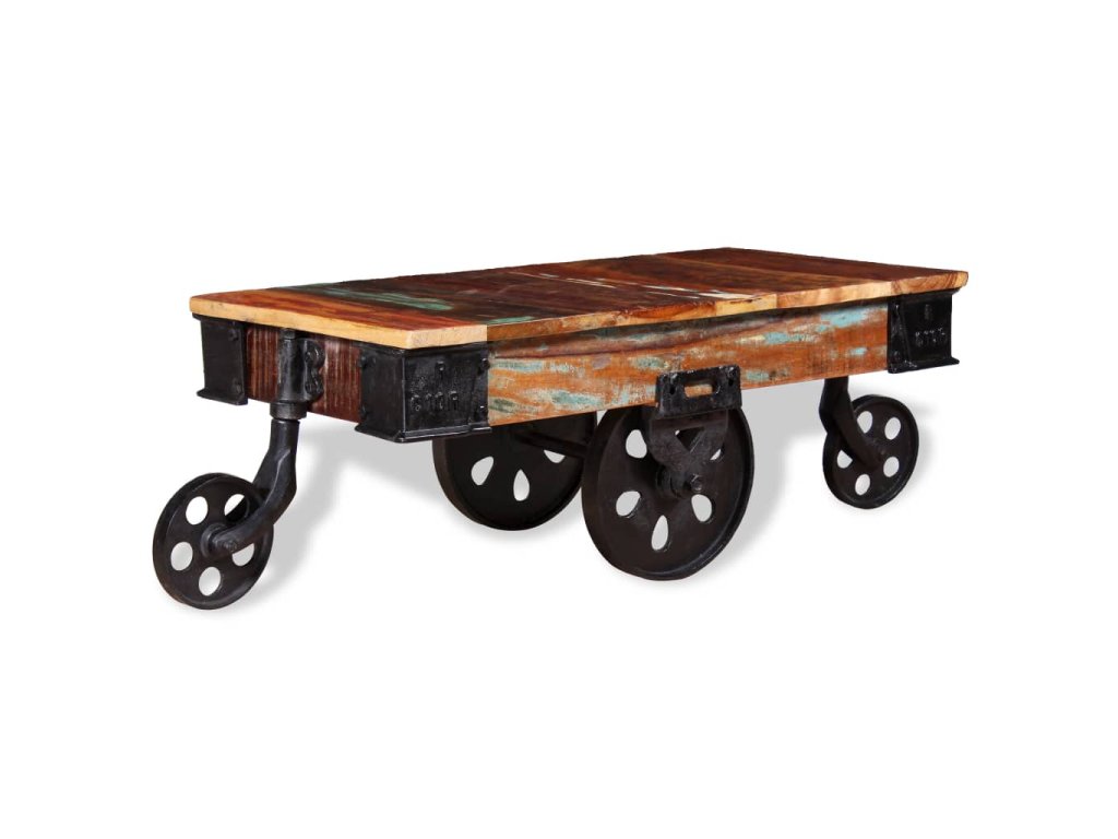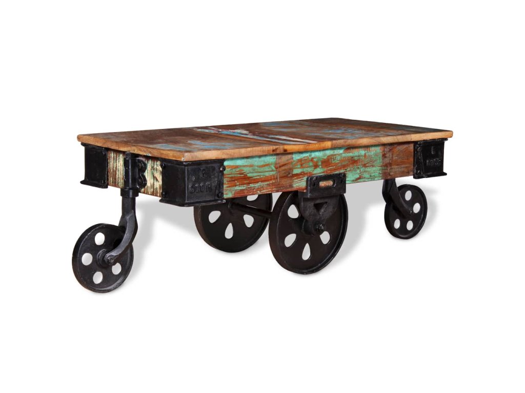 Konferenční stolek v retro provedení je ručně vyrobený z recyklovaného dřeva, což mu propůjčuje stabilitu a odolnost. Recyklované dřevo má také vlastnosti různých druhů dřeva, jako je teak, mangovník, akácie, recyklované či tvrdé dřevo atd. Každý krok výroby je prováděný s největší péčí, ať už jde o leštění, nebo lakování. Řemeslné zpracování a krásná struktura dřeva činí každý kus nábytku unikátní a mírně se liší od všech ostatních. Stolek disponuje 4 železnými kolečky, která doplňují jeho industriální vzhled a usnadňují jeho přesouvání.