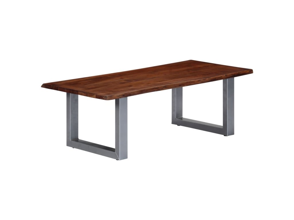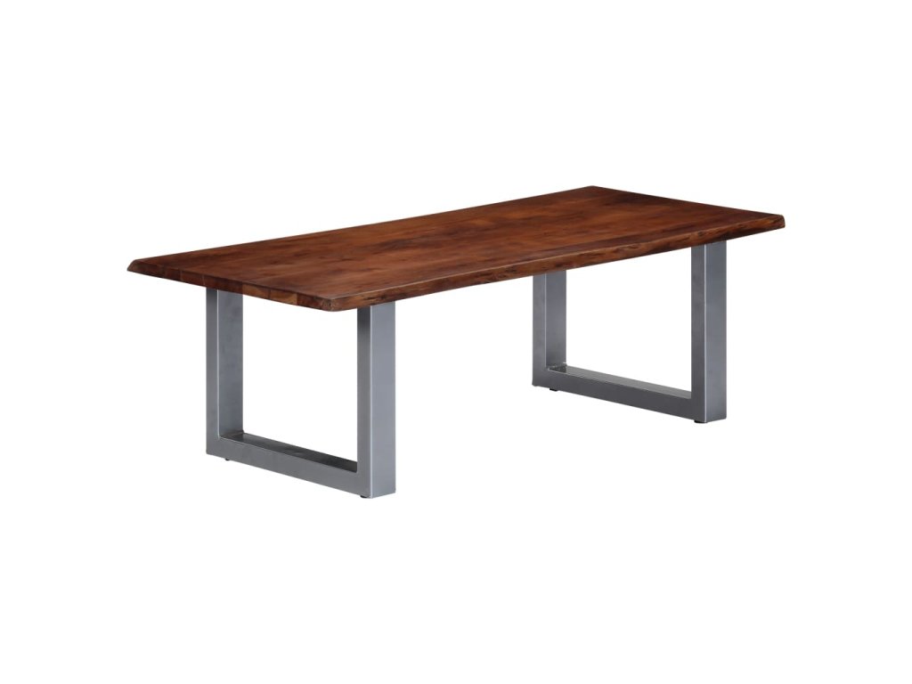Stolní deska je vyrobena z pevného, masivního akáciového dřeva. Jeho jedinečné kovové nohy ve tvaru písmene U dodávají stolku industriální styl a mimořádnou stabilitu. Nepravidelná hrana dřeva, která sleduje přirozený tvar stromu, navíc zdůrazňuje krásu stolku.