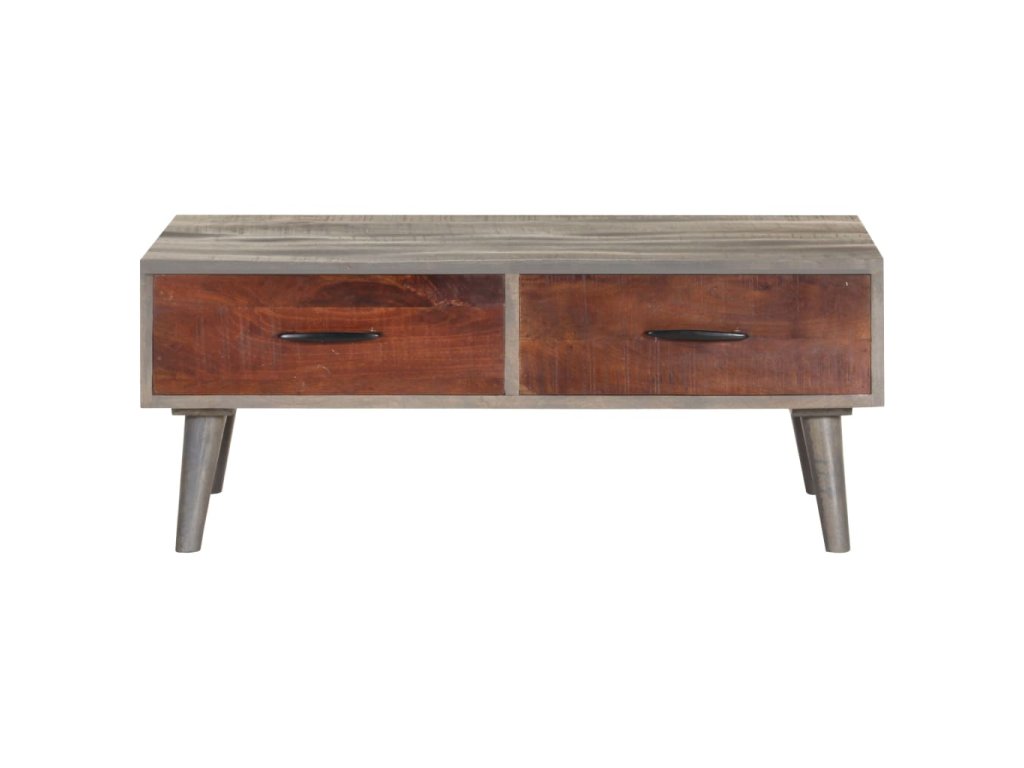 Stolek k pohovce je zhotovený z masivního mangovníku, což je tropické tvrdé dřevo, které dokáže unést značnou váhu a výjimečně dobře odolává opotřebení. Zručné zpracování a nádherná kresba dřeva vtiskly každému kusu nábytku unikátní charakter, kterým se lehce liší od všech ostatních. Na prostornou a robustní stolní desku si můžete nejen odkládat nápoje a občerstvení, ale také zde vystavit mísu s ovocem nebo různé dekorace. Také 2 zásuvky nabízí dostatek místa k přehlednému uložení vašich časopisů, knížek a dalších maličkostí na dosah ruky.