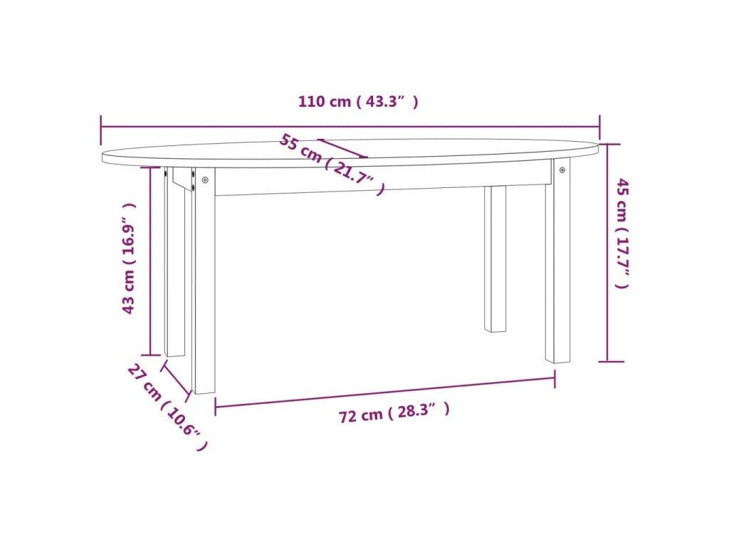 Konferenční stolek šedý 110 x 55 x 45 cm masivní borové dřevo