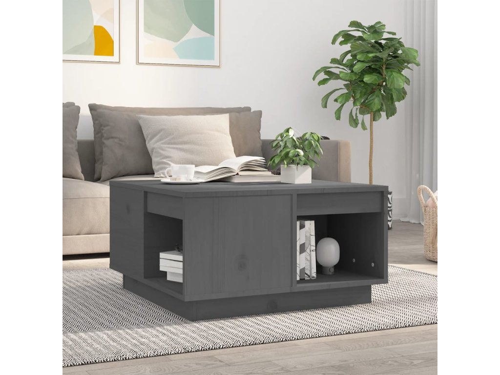 Konferenční stolek šedý 60x61x32,5 cm masivní borové dřevo