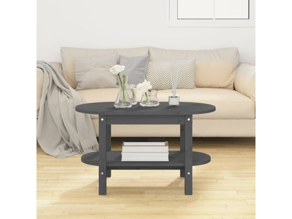 Konferenční stolek šedý 80 x 45 x 45 cm masivní borové dřevo