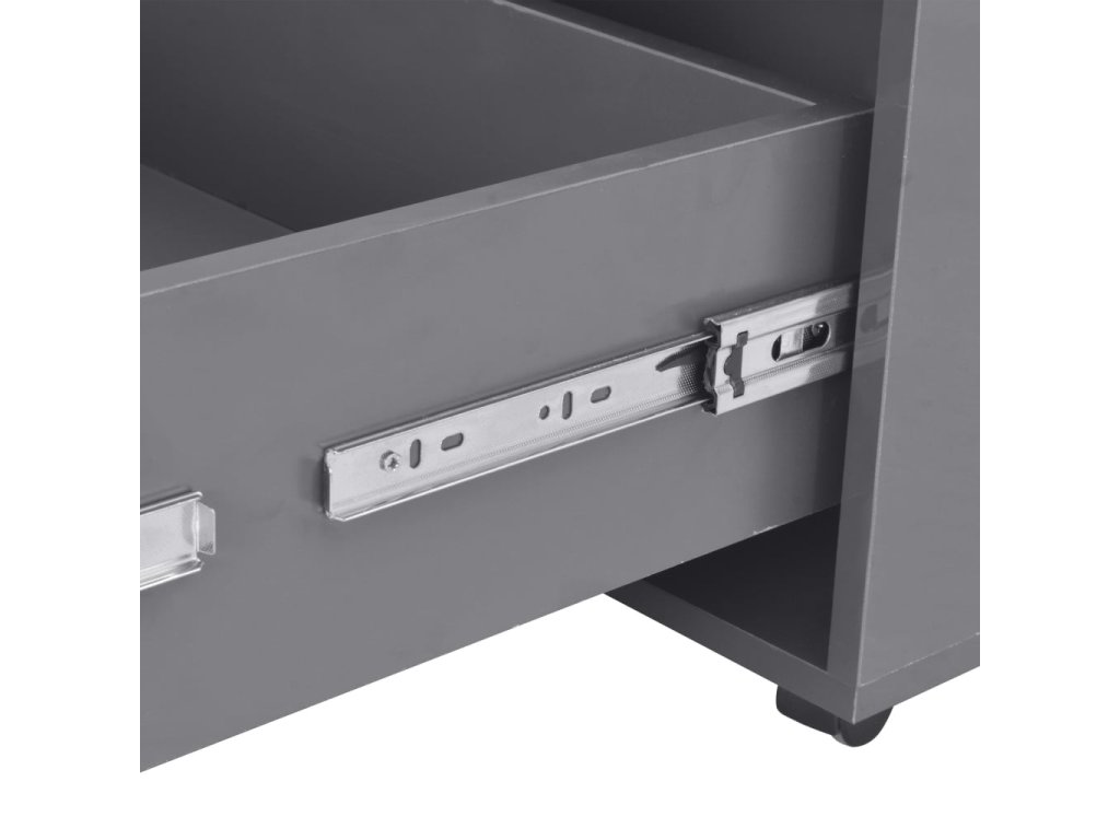 Stolek k pohovce je vyroben z kompozitního dřeva s vysoce lesklou povrchovou úpravou, která mu propůjčuje rafinovaný vzhled a zaručuje jeho stabilitu a odolnost. Po obou stranách ho můžete rozšířit, takže budete mít vždy spoustu prostoru k odkládání časopisů, knih, dálkových ovladačů a dalších různých drobností, jež chcete mít na dosah ruky. Stolek je rovněž vybaven kolečky s brzdou pro snadné přesouvání nebo zajištění na místě. Sestavení konferenčního stolku je jednoduché.