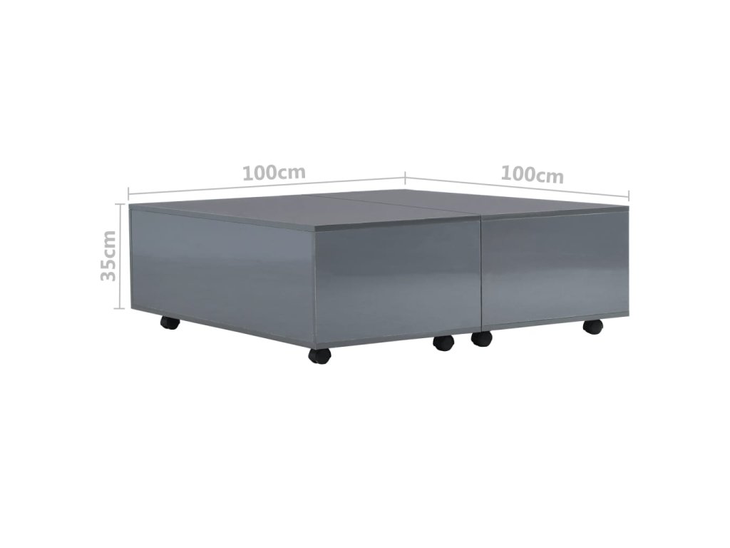 Konferenční stolek šedý s vysokým leskem 100 x 100 x 35 cm
