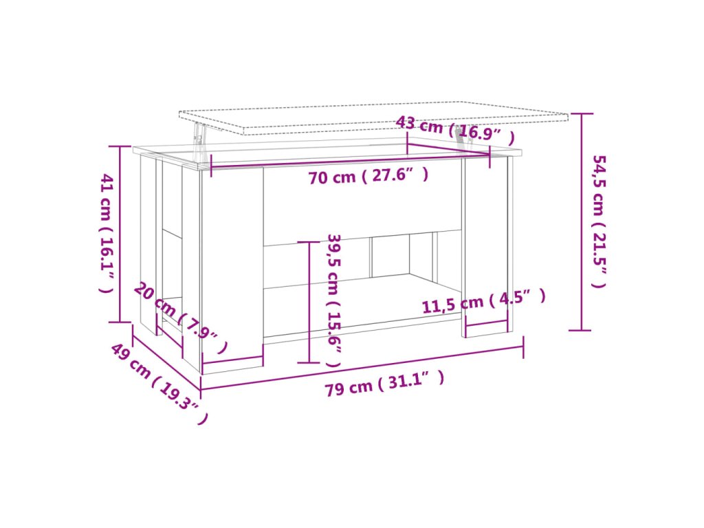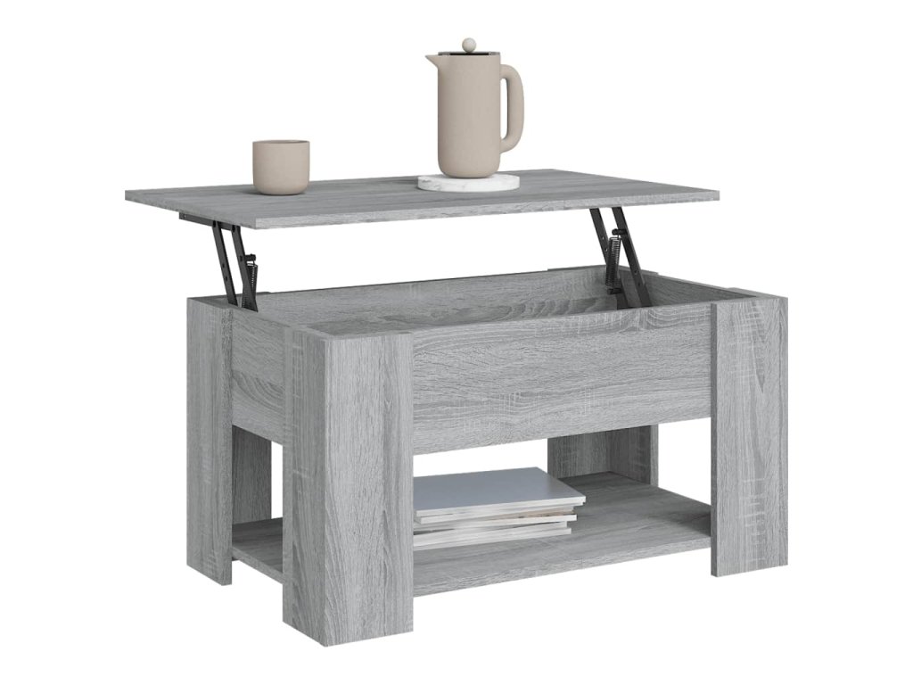 - Praktický design se zvedací deskou: Horní desku tohoto odkládacího stolku lze hladce zvednout do pohodlné výšky, a přeměnit ho tak na místo, kde můžete pracovat nebo jíst.