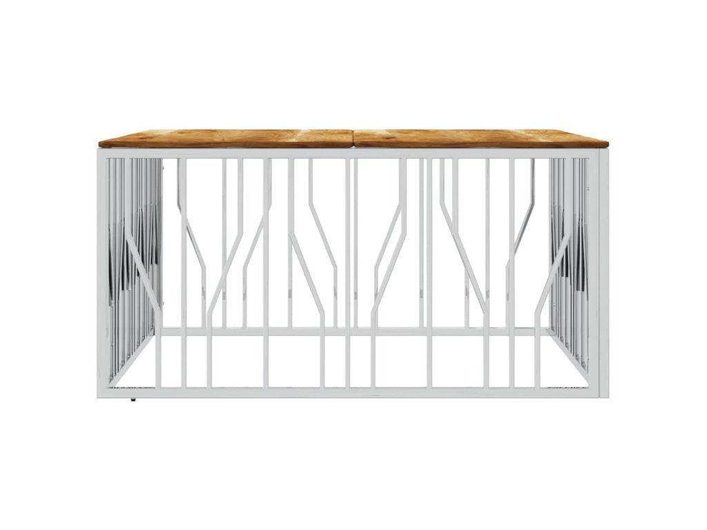 Konferenční stolek stříbrný nerezová ocel a masivní akácie