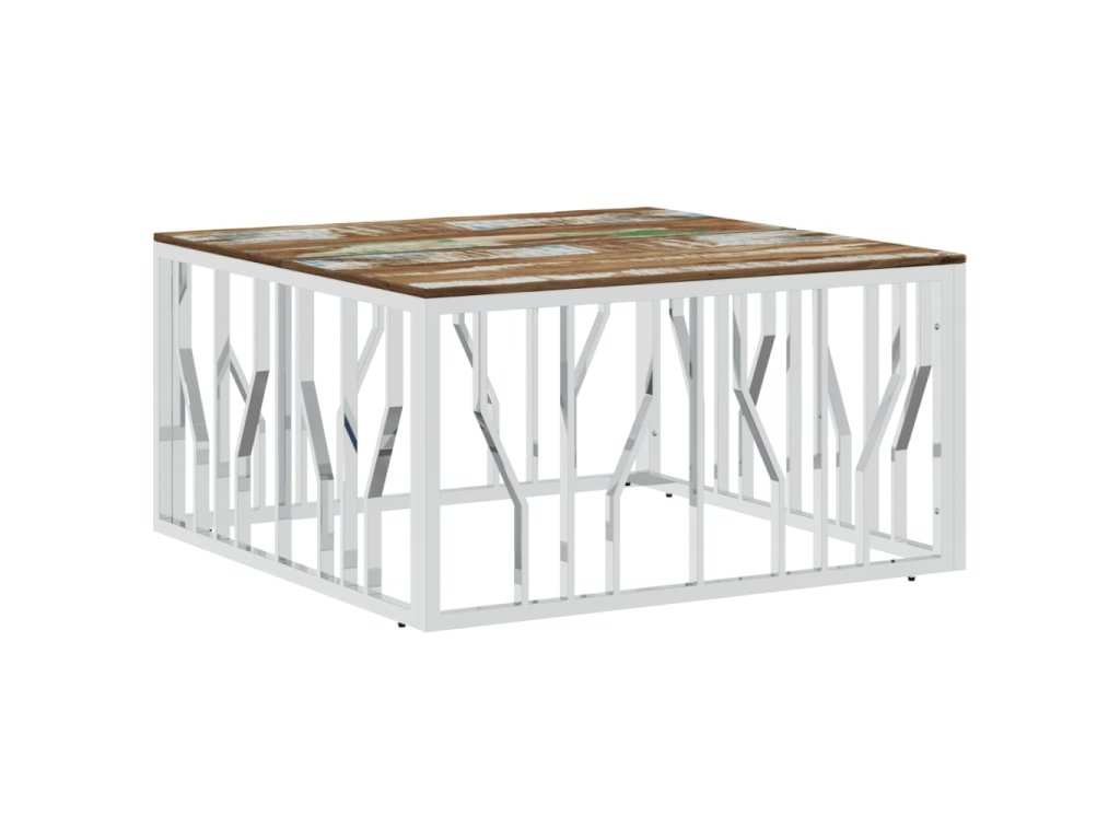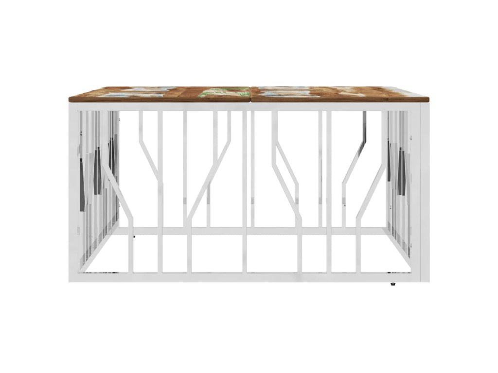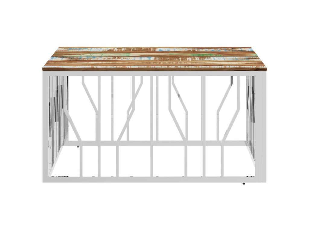 Konferenční stolek stříbrný nerezová ocel a recyklované dřevo