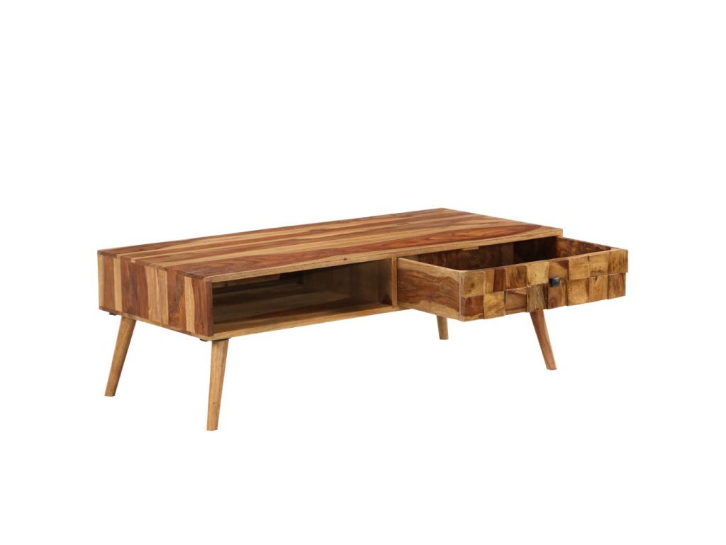 Náš konferenční stolek z masivního akáciového dřeva s povrchovou úpravou medové barvy vyzařuje působivé vintage kouzlo a krásně oživí vaši domácnost.