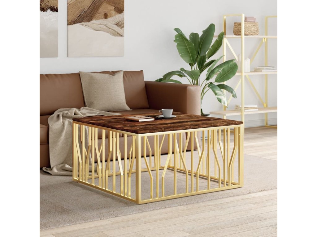 Konferenční stolek zlatý nerezová ocel a recyklované dřevo