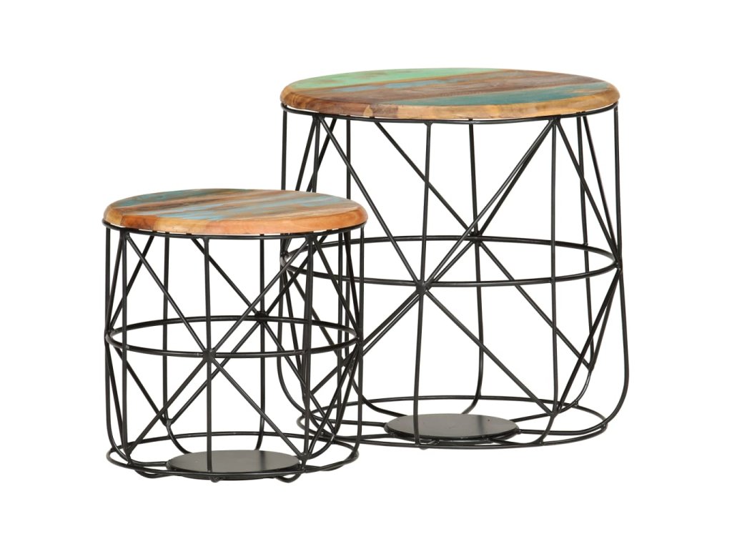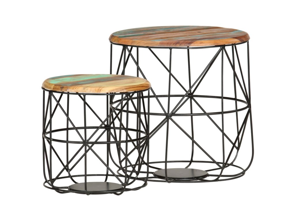Tato sada 2 dřevěných konferenčních stolků různých velikostí je dokonalý vintage a nadčasový nábytek pro vaše bydlení. A jejich stolní desky z masivního dřeva jsou perfektní k servírování nápojů nebo vystavování váz, mís s ovocem nebo jiné dekorace.