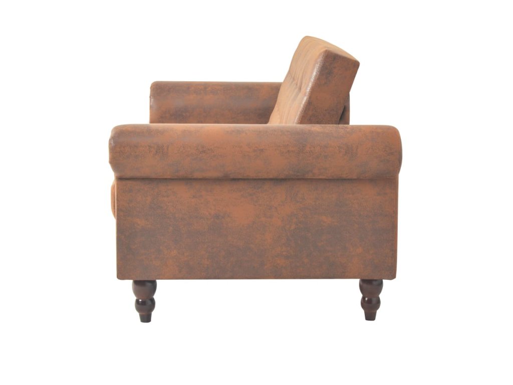 Konvertibilní 2místná pohovka s područkami umělý semiš hnědá