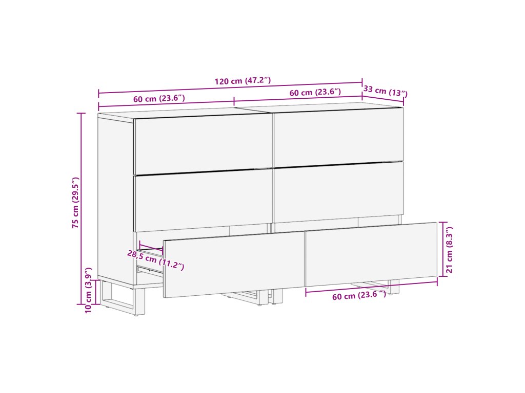 - Prostorná úložná kapacita: S více zásuvkami a dostatkem místa pro přihrádky, tyto boční skříňky nabízejí štědrá úložná řešení pro vaše jídelní nezbytnosti, dekorace nebo každodenní domácí potřeby. Prostorný design umožňuje organizované umístění předmětů, což zajišťuje, že váš obytný prostor zůstává přehledný a příjemný na pohled.