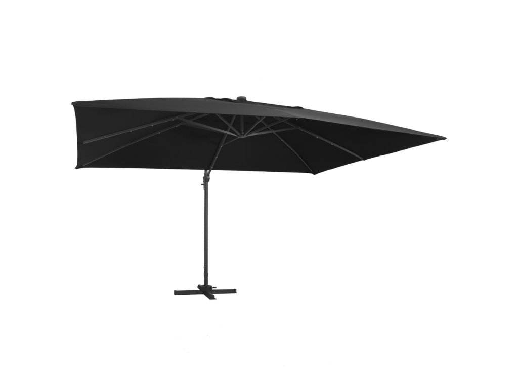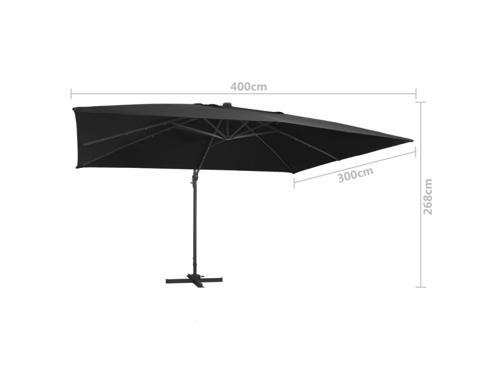 Konzolový slunečník s LED a hliníkovou tyčí 400 x 300 cm černý