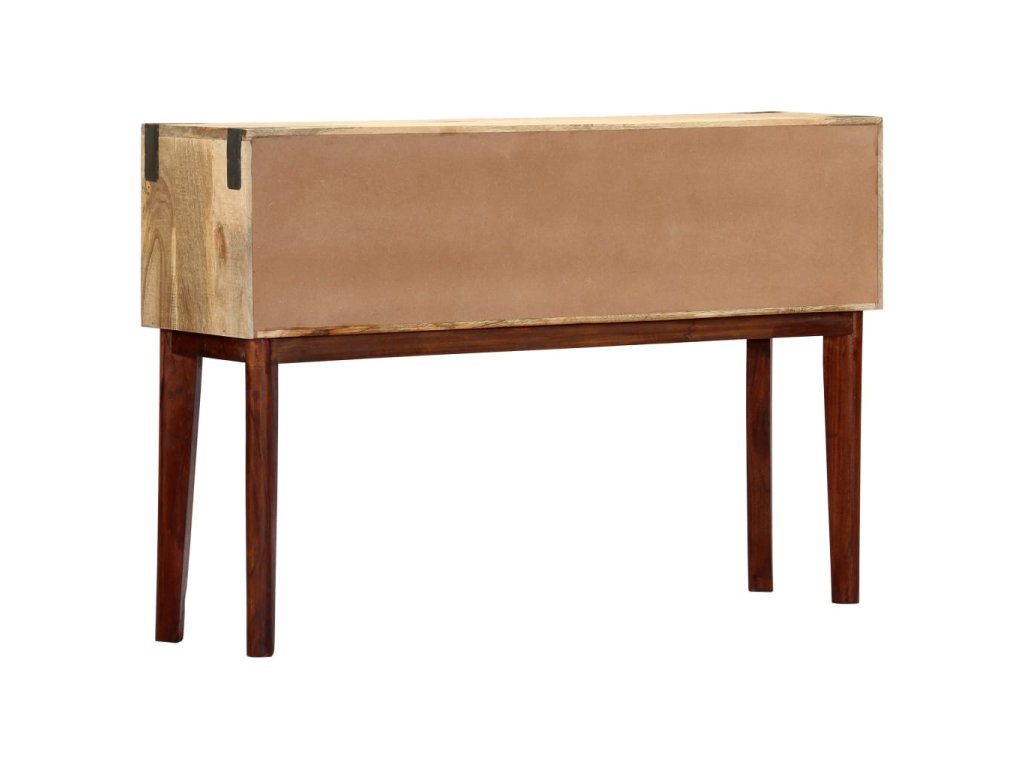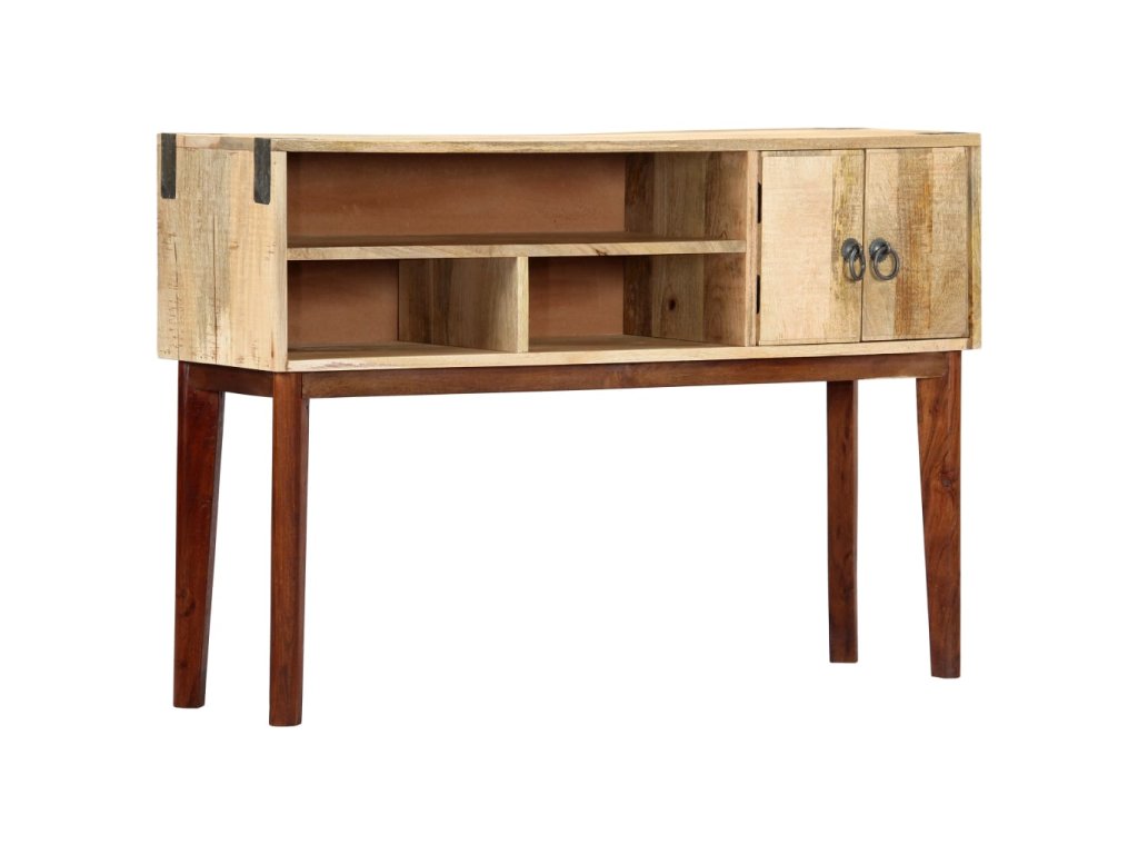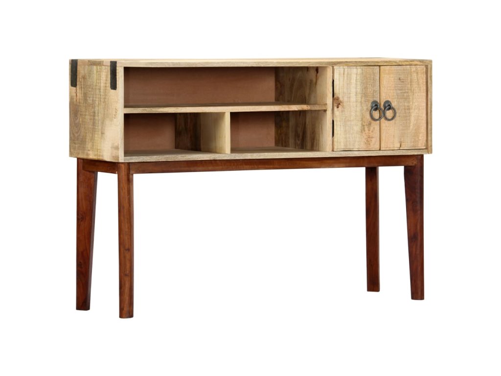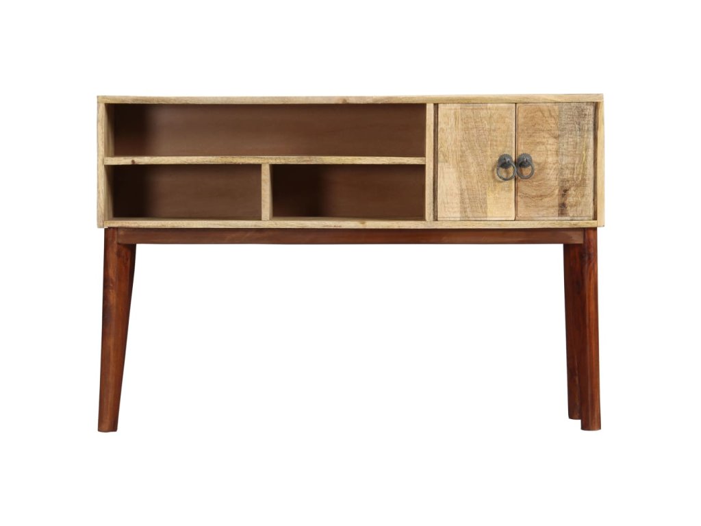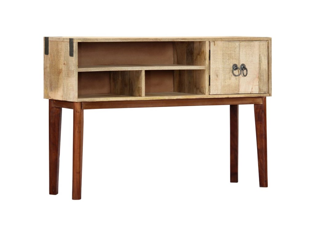 Stolek je zhotoven z masivního hrubého mangovníkového dřeva a má pevnou desku, na kterou si můžete vystavit dekorativní předměty, jako jsou mísy s ovocem či vázy. Pevné nohy zaručují jeho stabilitu a odolnost, takže vám vydrží sloužit po dlouhá léta. Mangovník je husté a robustní tvrdé dřevo s překrásnými zlatými či hnědými pruhy a konturami. Každá fáze výrobního procesu je prováděna s mimořádnou péčí, ať už se jedná o leštění, natírání anebo lakování. Stolek má skříňku s dvojitými dvířky a 3 otevřené přihrádky, v nichž najdete spoustu místa k přehlednému uspořádání nejrůznějších menších věcí tak, abyste je měli vždy po ruce.