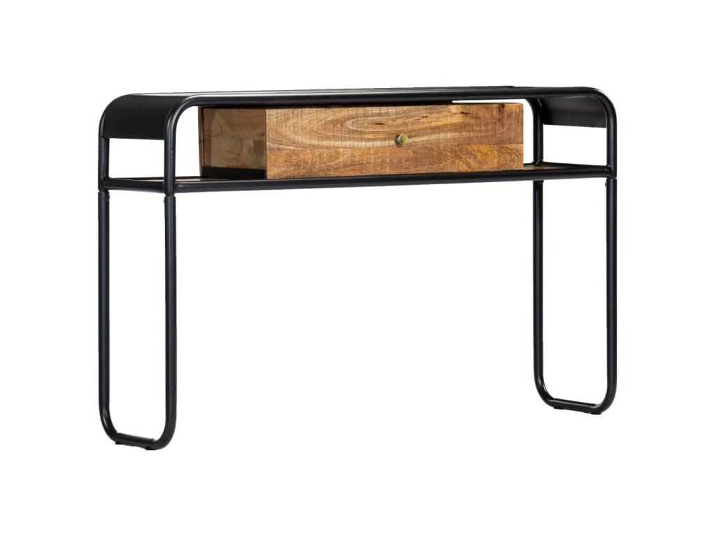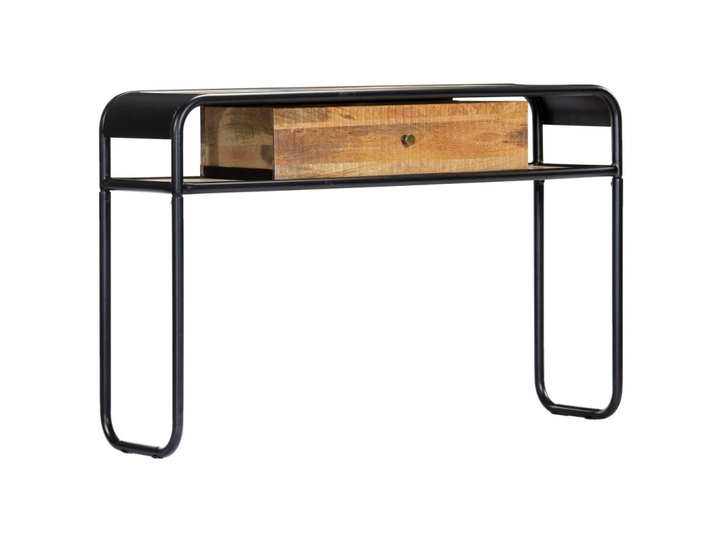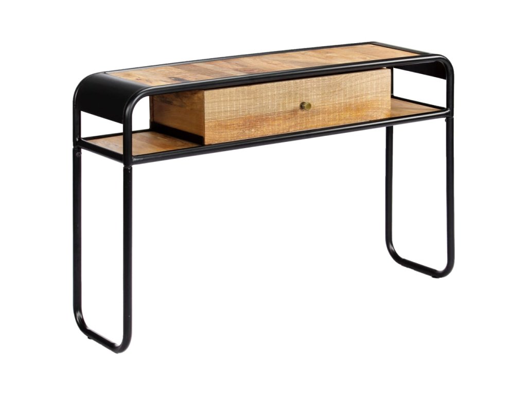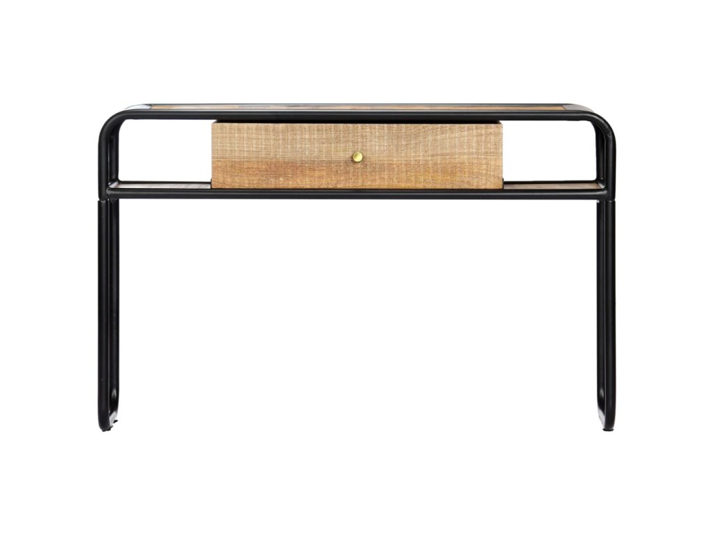 Stůl je vyroben z masivního mangovníkového dřeva, a proto je mimořádně stabilní a odolný. Mangovník je husté a robustní tvrdé dřevo, které se pyšní krásnou hnědou nebo zlatou kresbou. Rám z oceli s práškovým nástřikem dodává stolu dodatečnou stabilitu. Každý krok výrobního procesu je prováděn s tou největší pečlivostí, ať už se jedná o leštění, natírání či lakování. Konzolový stolek disponuje 1 šuplíkem a 2 přihrádkami, ve kterých najdete dostatečný úložný prostor pro multimediální přístroje, knihy a různé ostatní předměty. Stolek je již sestaven; žádná montáž není nutná.