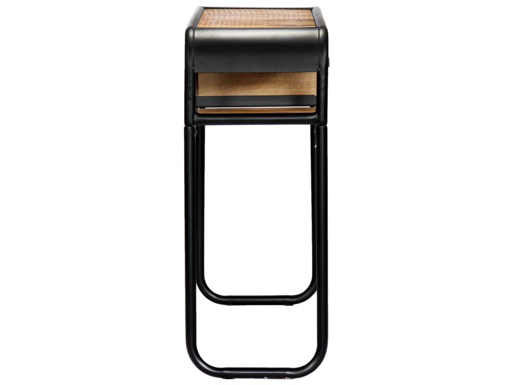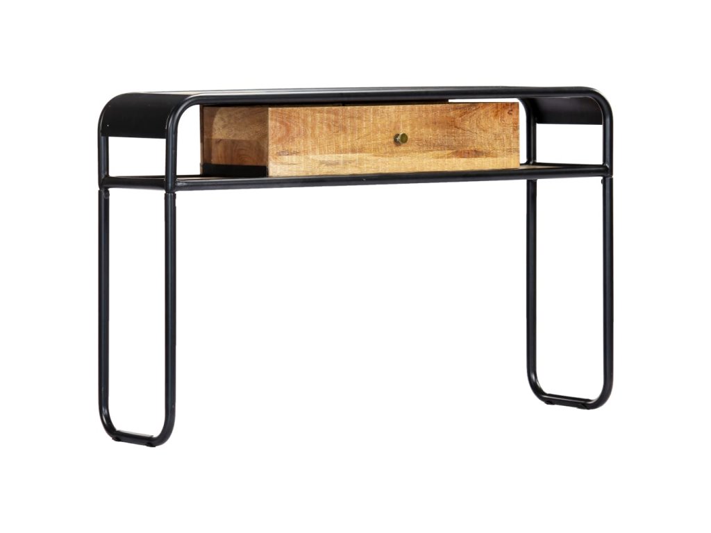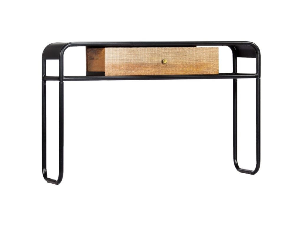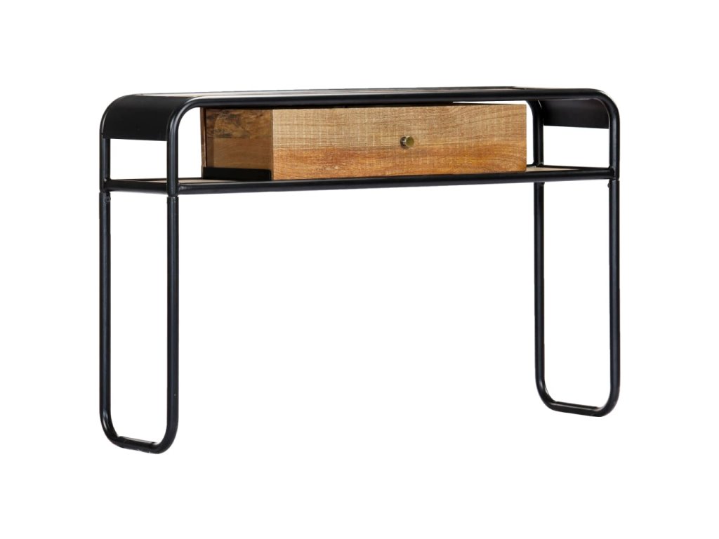 Stůl je vyroben z masivního mangovníkového dřeva, a proto je mimořádně stabilní a odolný. Mangovník je husté a robustní tvrdé dřevo, které se pyšní krásnou hnědou nebo zlatou kresbou. Rám z oceli s práškovým nástřikem dodává stolu dodatečnou stabilitu. Každý krok výrobního procesu je prováděn s tou největší pečlivostí, ať už se jedná o leštění, natírání či lakování. Konzolový stolek disponuje 1 šuplíkem a 2 přihrádkami, ve kterých najdete dostatečný úložný prostor pro multimediální přístroje, knihy a různé ostatní předměty. Stolek je již sestaven; žádná montáž není nutná.