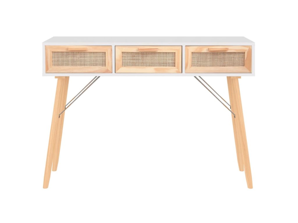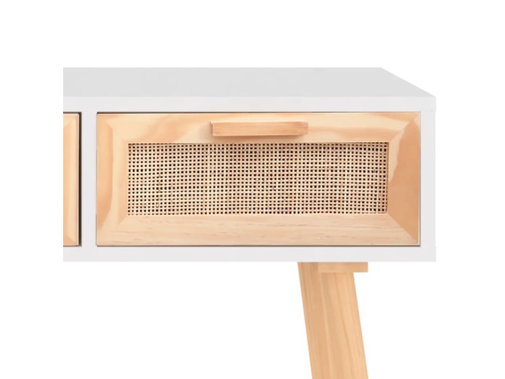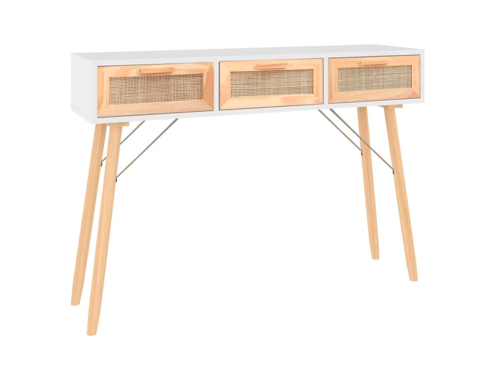 Konzolový stolek bílý 105x30x75 cm borovice a přírodní ratan