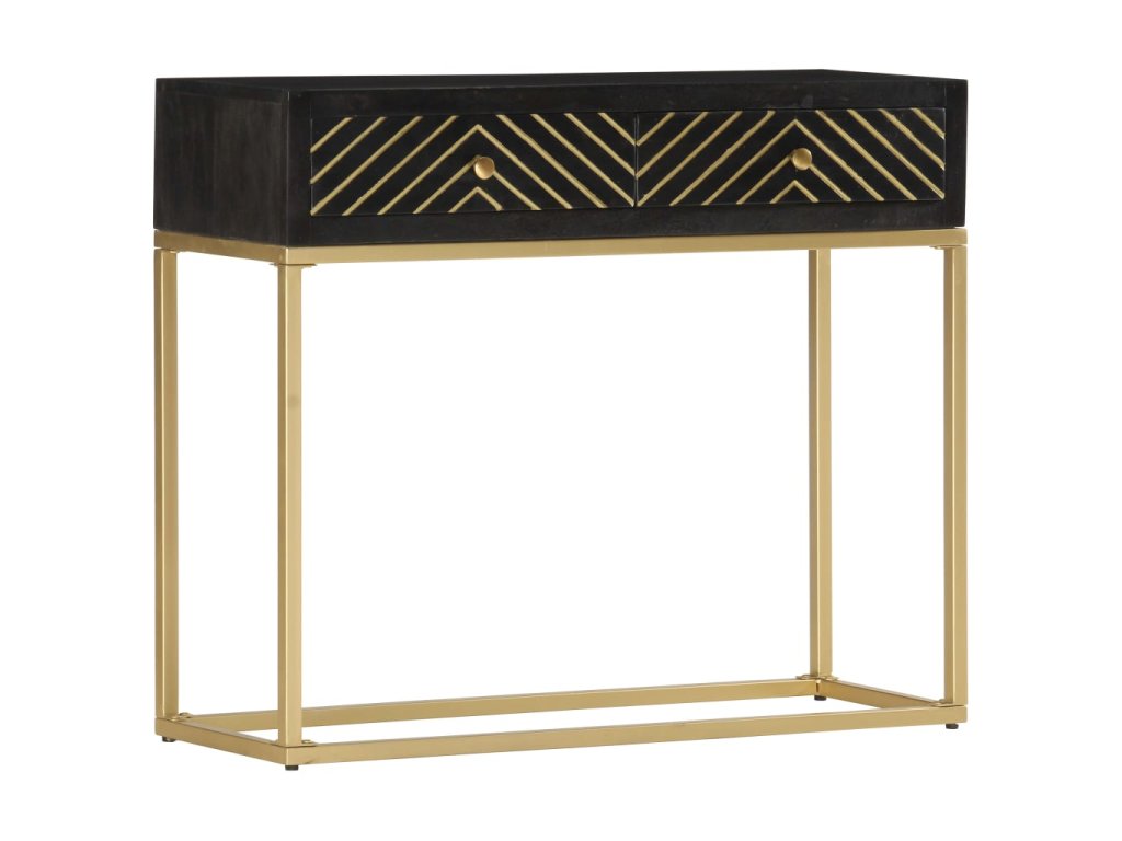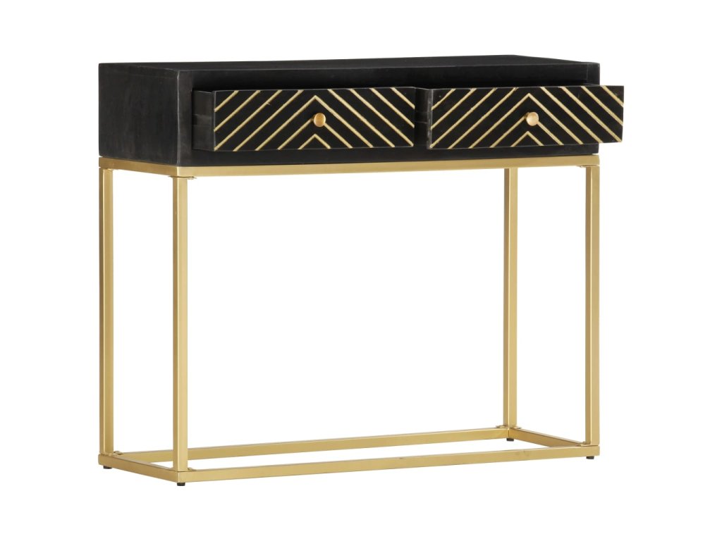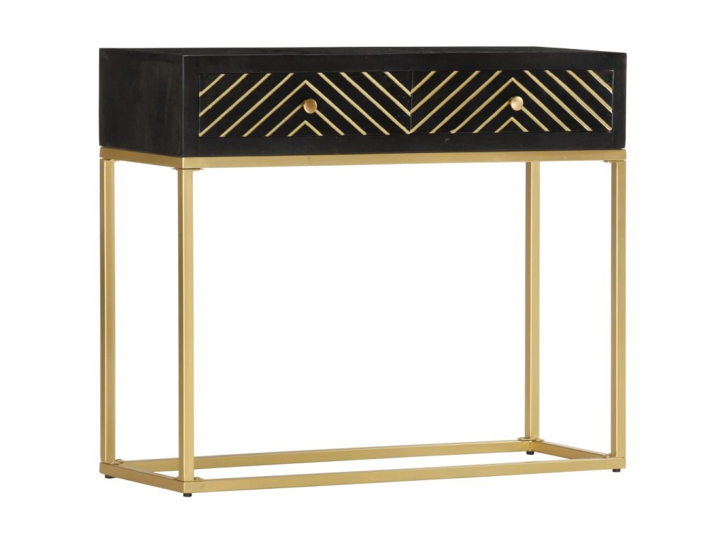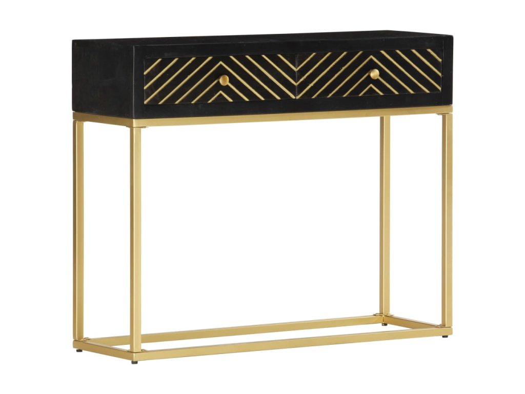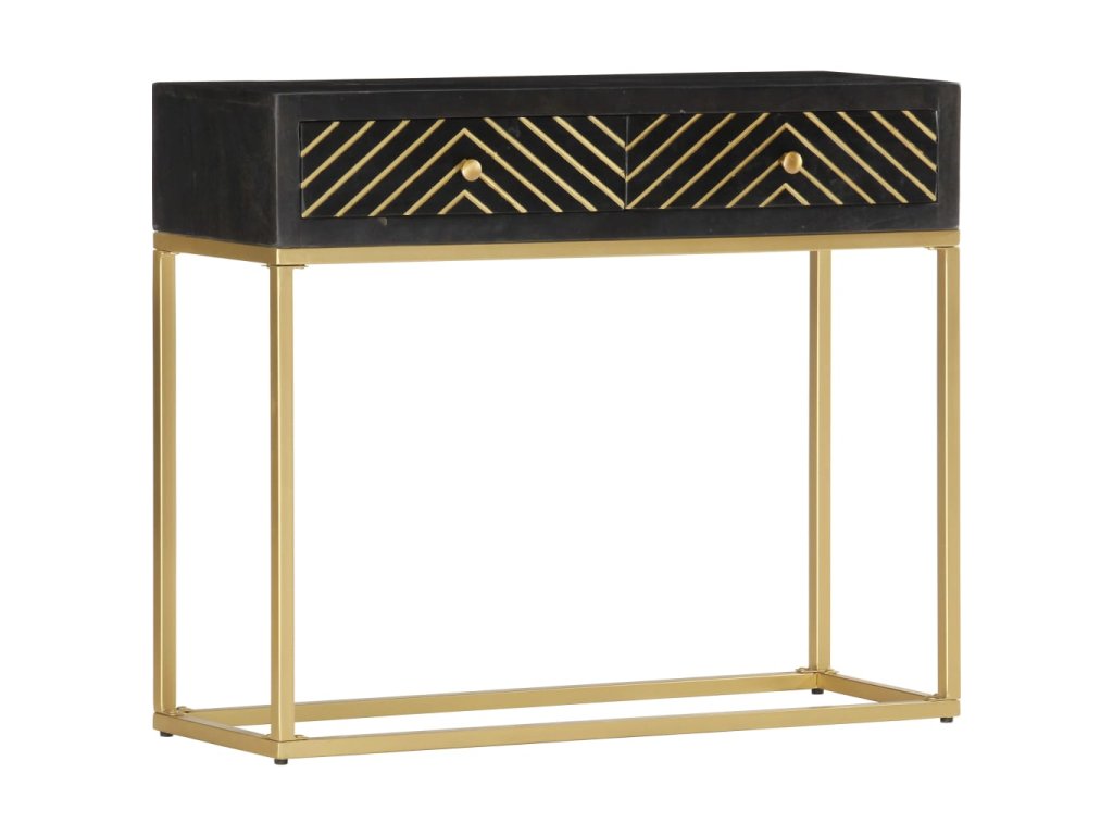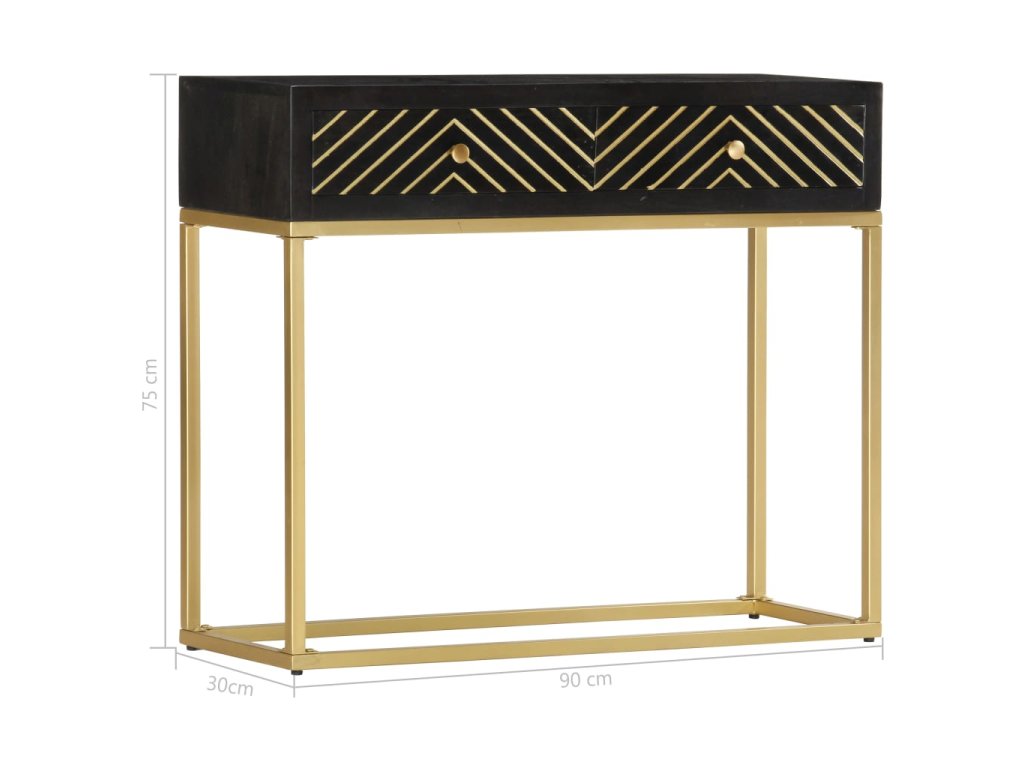 Konzolový stolek černozlatý 90 x 30 x 75 cm masivní mangovník