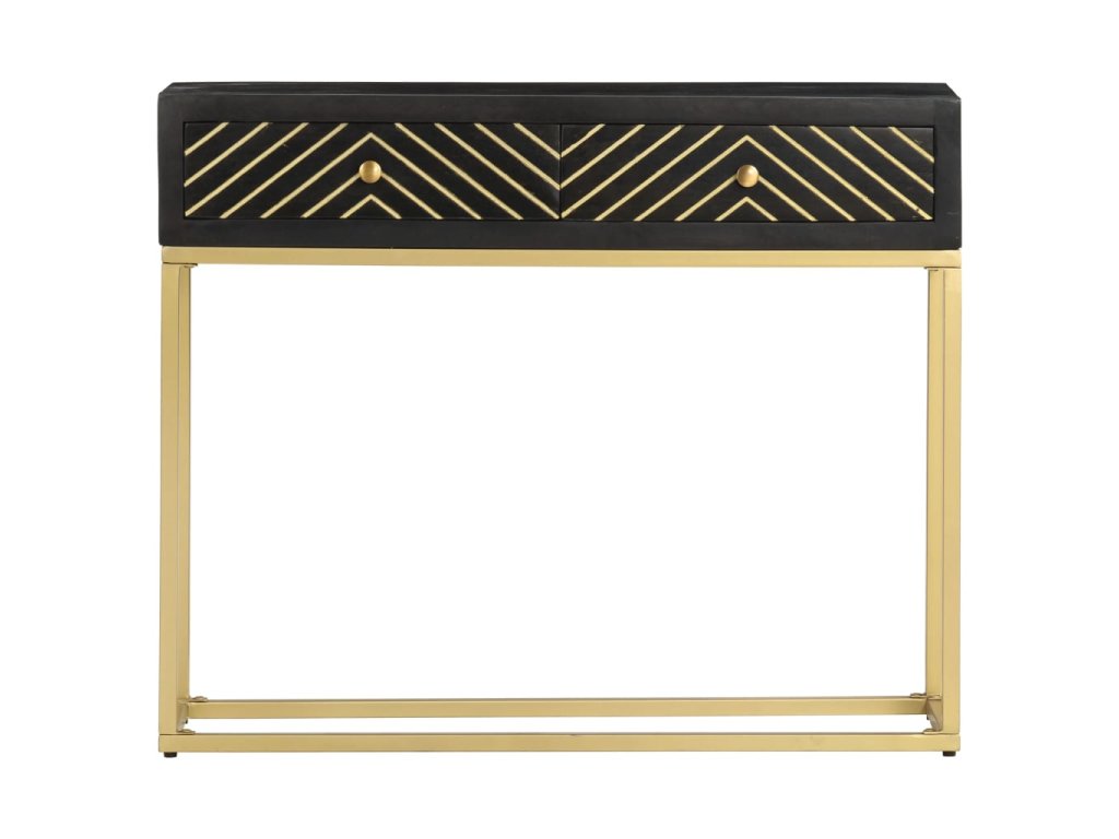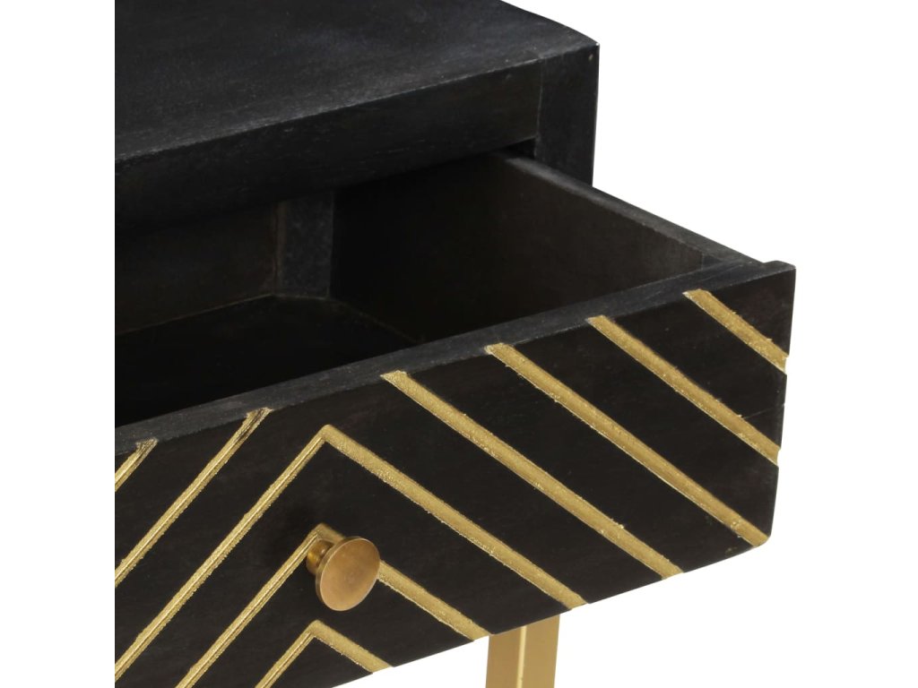 Náš dřevěný konzolový stolek vyniká svou černozlatou povrchovou úpravou a jeho nadčasový design zkrášlí vaše bydlení.