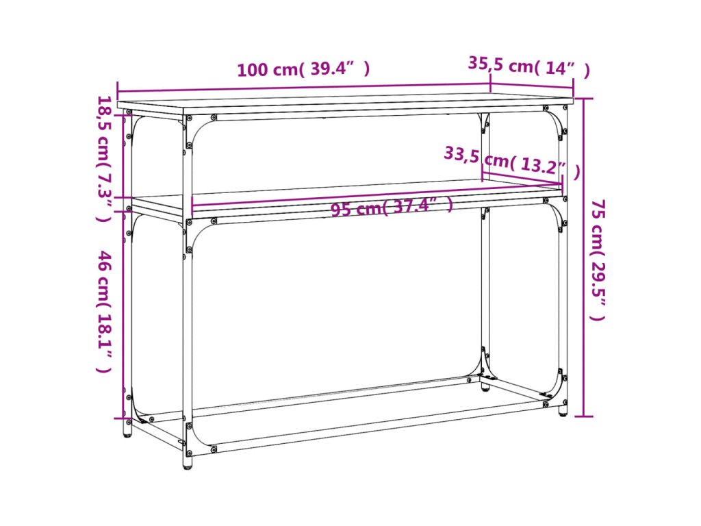 Konzolový stolek hnědý dub 100 x 35,5 x 75 cm kompozitní dřevo
