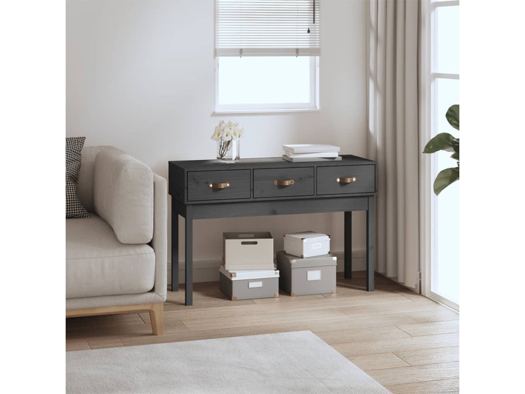 Konzolový stolek šedý 110x40x75 cm masivní borové dřevo