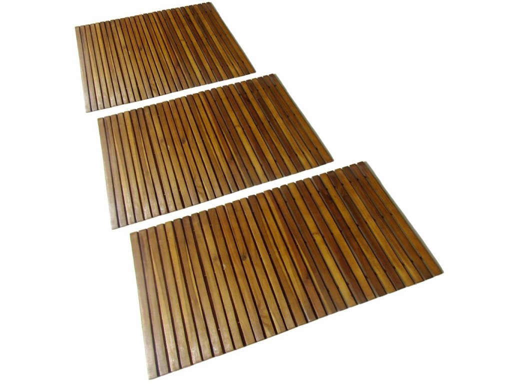 Koupelnová předložka 3 ks 80 x 50 cm akáciové dřevo