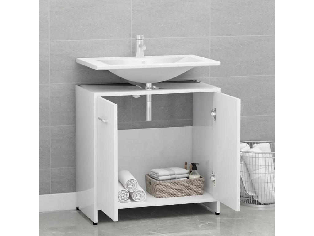 Stylová skříňka je vyrobená z kompozitního dřeva, takže je pevná a stabilní. Uvnitř je 1 přihrádka a 2 dvířka, nabízí tedy spoustu místa, kam uklidit vaše koupelnové potřeby. Úchytky na dvířkách napomáhají snadnějšímu otevírání a zavírání. Skříňku jednoduše očistíte navlhčeným hadříkem.