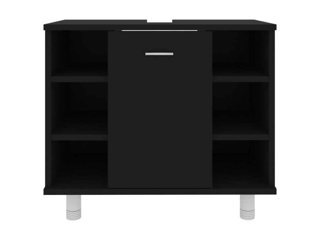 Stylová skříňka je vyrobená z kompozitního dřeva, takže je pevná a stabilní. Je vybavena 7 přihrádkami za 1 dvířky, nabízí tedy celou řadu úložných možností a rovněž dodatečné místo, kam si můžete uklidit vaše koupelnové potřeby. Úchytka na dvířkách napomáhá snadnějšímu otevírání a zavírání. Skříňku jednoduše očistíte navlhčeným hadříkem.