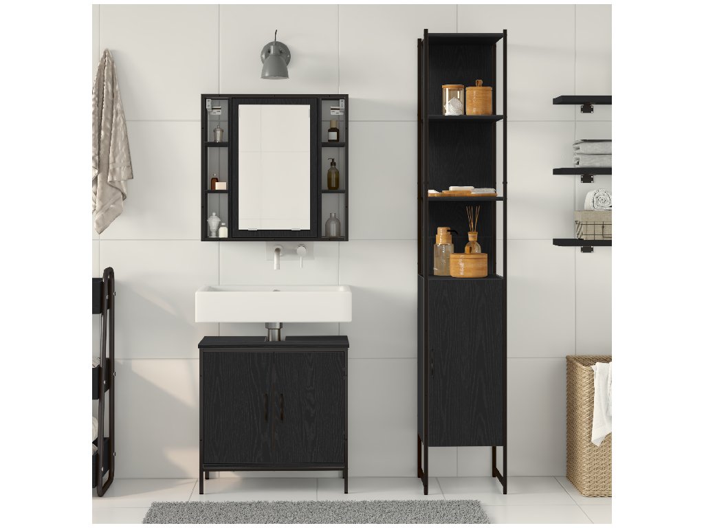 - Důležité komponenty: Set obsahuje nástěnnou zrcadlovou skříňku, umyvadlovou skříň a vysokou koupelnovou skříň. Každý kus přináší unikátní úložné řešení, které pomůže udržet vaši koupelnu v pořádku a organizovanou. Zrcadlo taky poslouží k úpravě vzhledu, zatímco skříně mají dostatek místa na kosmetiku a další potřebnosti.