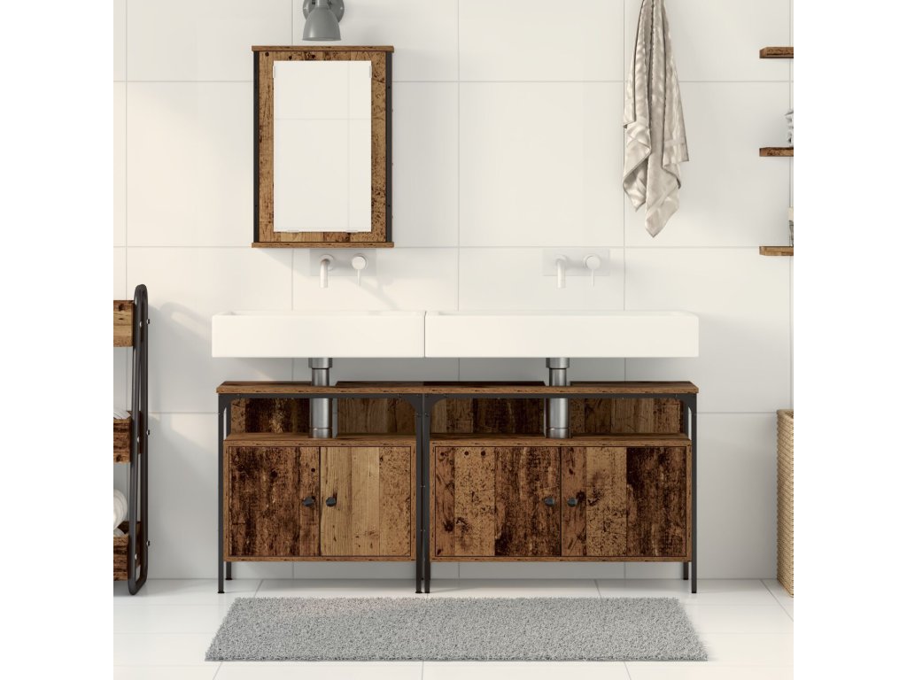 Konstrukce z konstrukčního dřeva: Tento materiál je známý dlouhou životností a odolností proti vlhkosti, ideální pro koupelny. Hladký povrch se snadno udržuje a dodává stylový vzhled. Univerzální zrcadlo: Obsahuje kvalitní rovinné zrcadlo, perfektní na úpravy a opticky zvětšuje prostor koupelny. Dostatek úložného prostoru: Skříňka nabízí velké úložné místo se skříňovým umyvadlem a zrcadlovou skříňkou pro udržení pořádku. Promyšlený design: Skříňka má skryté dveře a černé úchyty, díky čemuž se hodí do moderní koupelny, a nabízí přístupné úložiště. Snadná údržba: Udržujte ji v čistotě snadno pomocí vlhkého hadříku, čímž zajistíte její dlouhou atraktivitu a snížíte potřebu údržby.- Barva: Hnědá
