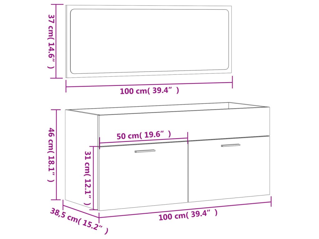 - Rozměry koupelnové skříňky: 100 x 38,5 x 46 cm (D x Š x V)
