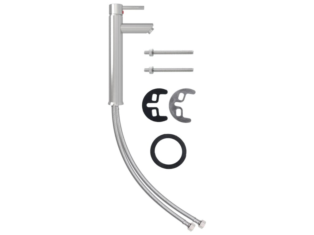 Baterii dodáváme včetně hadiček pro teplou a studenou vodu a montážních součástí a její instalace je snadná. Chromovaná umyvadlová baterie má vysoce reflexivní, zrcadlový lesk. Solidní mosazná konstrukce, zinková rukojeť a keramická disková kartuše přispívají k vysoké odolnosti této vodovodní baterie. Kohoutek se také snadno čistí a používá.