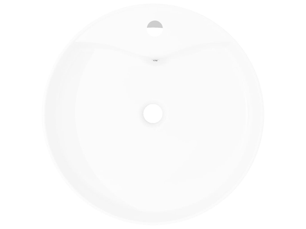 Koupelnové umyvadlo keramické kulaté bílé, otvor na baterií, přepad