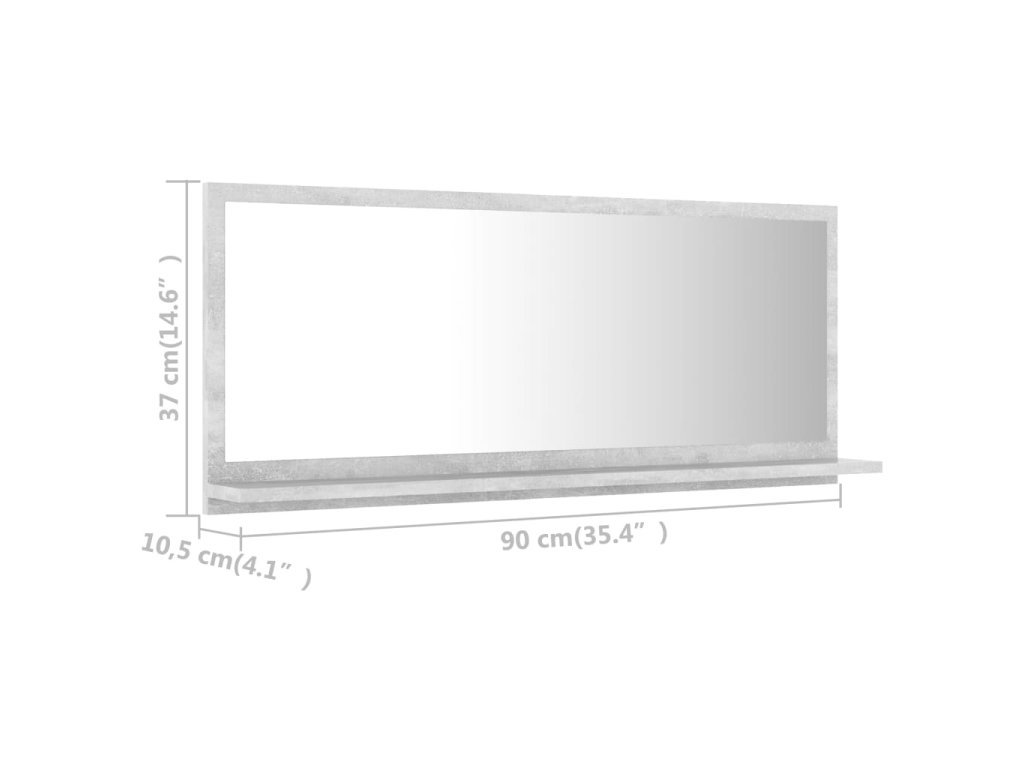 Koupelnové zrcadlo betonově šedé 90 x 10,5 x 37 cm dřevotříska