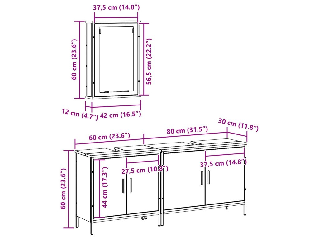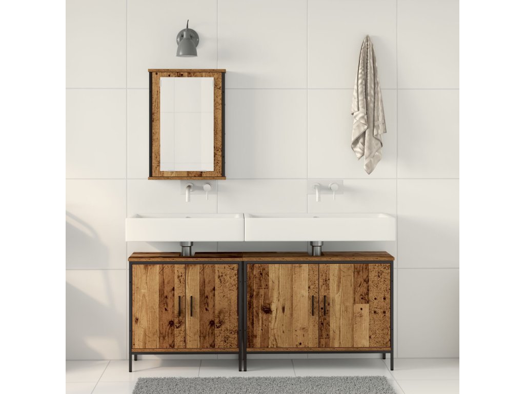 - Součásti Dostanete velkou skříňku se dřezem, další skříňku a zrcadlovou skříň, všechno navržené tak, aby splnilo vaše úložné potřeby a každý koupelnový nezbytnost mělo své místo. Uspořádání pomáhá šetřit prostor.