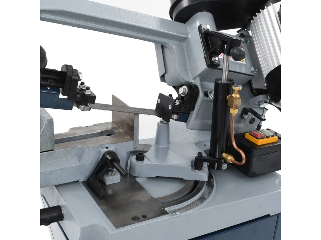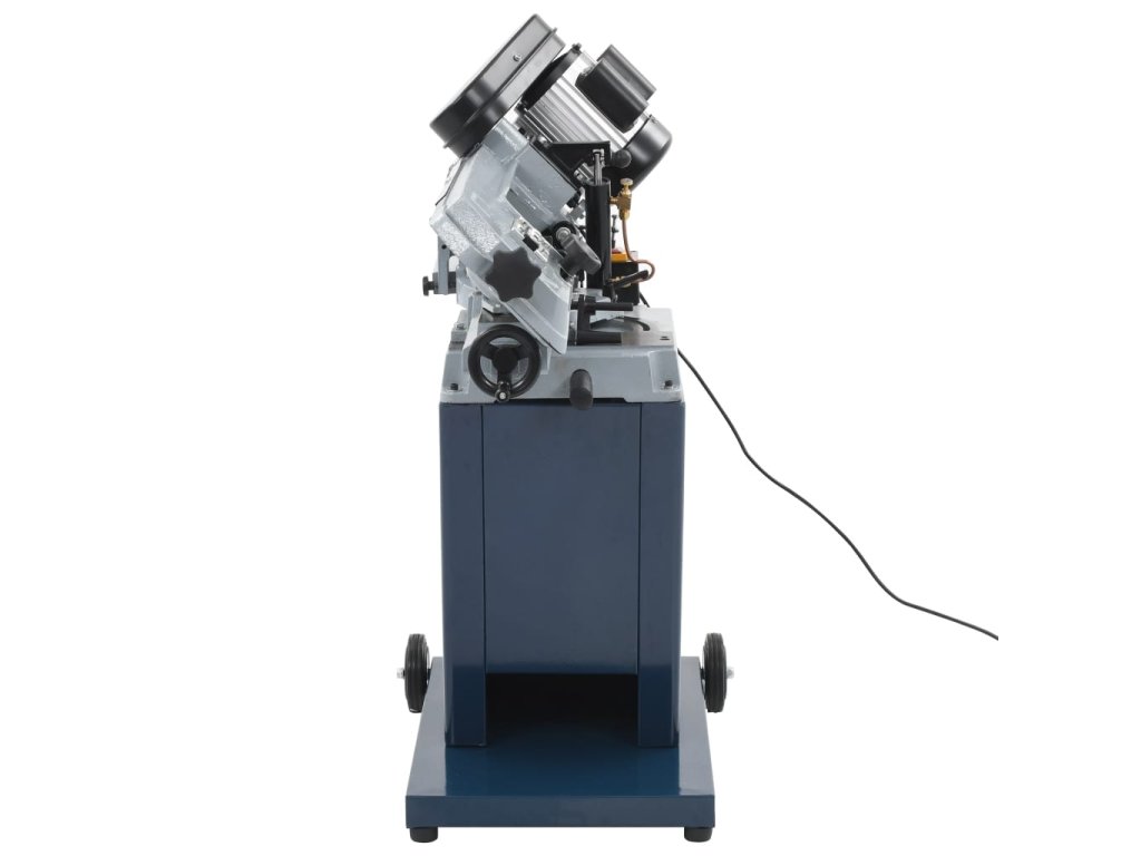 Tato otočná pásová pila má maximální prořez 100 mm a řezací šířku až 150 mm. Dosahuje řezné rychlosti 55 m/min a řezný úhel lze pro široký rozsah řezu a velkou flexibilitu naklápět v rozmezí 105°. Rychlost této pásové pily si můžete nastavit ve 3 režimech, snadno se proto ovládá a dobře používá. Zároveň umožňuje řezat různé materiály a provádět hladké řezy. Pokud navíc vybavíte pilu ostrým pilovým listem TPI 14, výkon této pásové pily se ještě zvýší. Robustní ocelová konstrukce zvyšuje stabilitu a odolnost pásové pily.