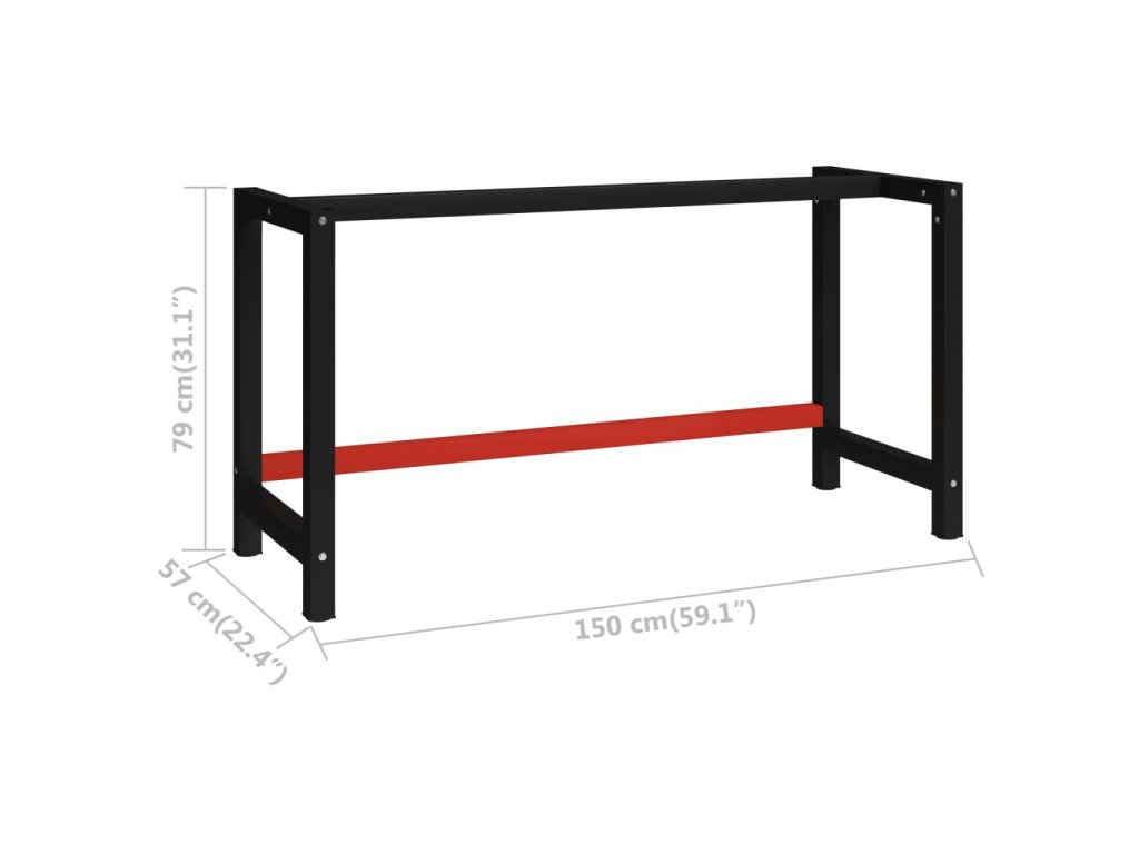 Kovový rám pracovního stolu 150 x 57 x 79 cm černá a červená