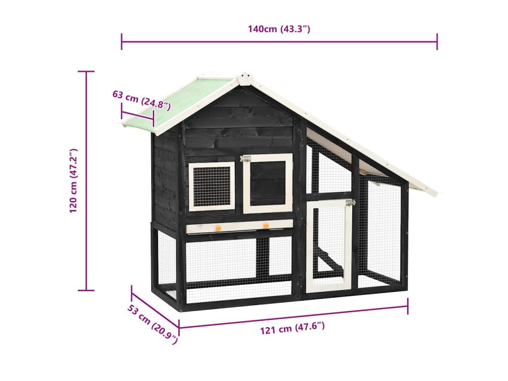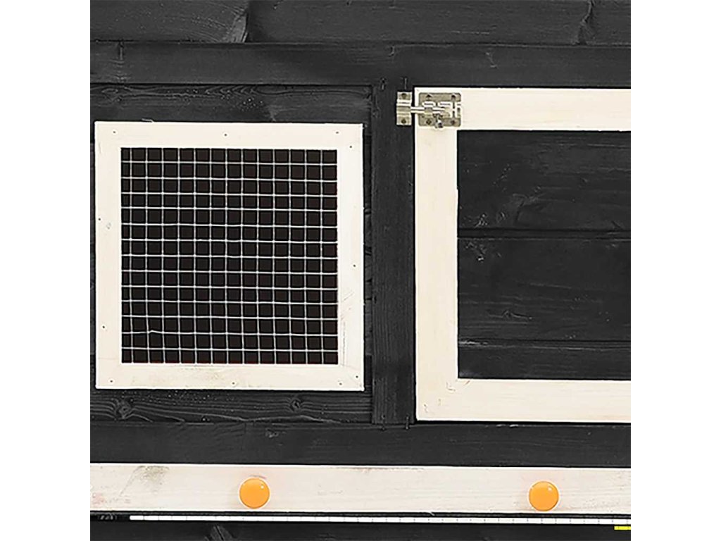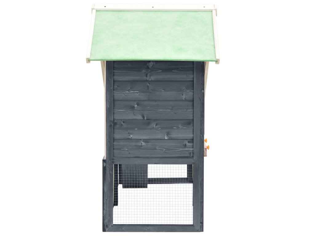 Tato králíkárna vašim mazlíčkům poskytne dostatek prostoru k pohybu, zatímco husté pletivo pomáhá předcházet nepravostem chování a nepředvídaným událostem a zaručuje dostatek čerstvého vzduchu. Pletivová konstrukce má ovšem i další výhody: zvířata mají rozhled po okolí a vy je můžete pozorovat při jejich hrátkách. Do králíkárny je přístup 2 dvířky a má masivní rám, a proto je stabilní a má dlouhou životnost. Zešikmená zelená střecha je pokrytá voděodolným textilem a chrání vnitřek pelíšku před deštěm. Zásuvka vyložená plechem slouží ke snadnému čištění králíkárny. Vnitřní kóje nabízí perfektní prostor na spaní. Přízemí je spojené s horním patrem pohodlnou rampou a vysunovací podnos usnadňuje čištění.