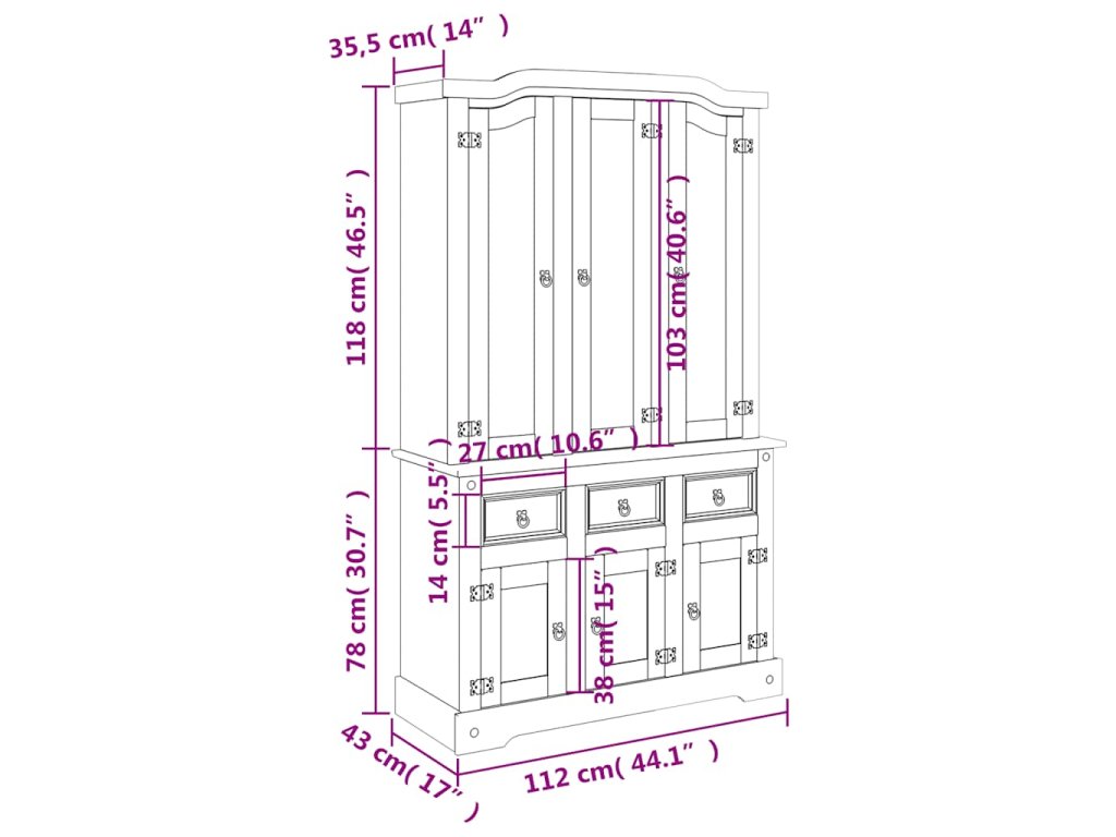 Kredenc Corona hnědý 112 x 43 x 196 cm masivní mexická borovice