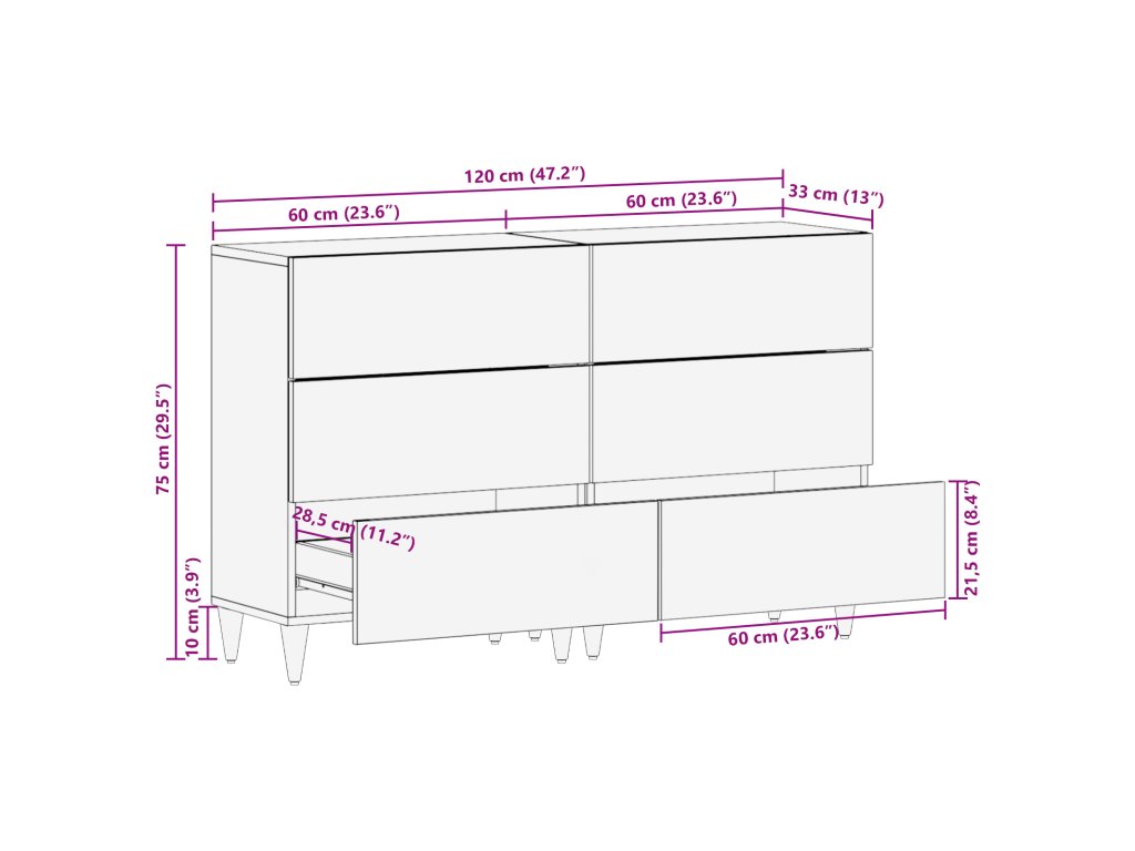 Tato komoda je šikovná a odolná, navržená tak, aby ladila s moderním interiérem. Štíhlý obdélníkový tvar nabízí různé úložné možnosti ve vašem obýváku nebo jídelně, zvyšujíc funkčnost i estetiku. Je vyrobená z masivního magnovníkového dřeva a inženýrského dřeva, což je ideální kombinace pro vzhled a odolnost. Její čisté linie se snadno vejdou do minimalistického stylu, což z ní dělá užitečný prvek pro jakýkoliv moderní domov.