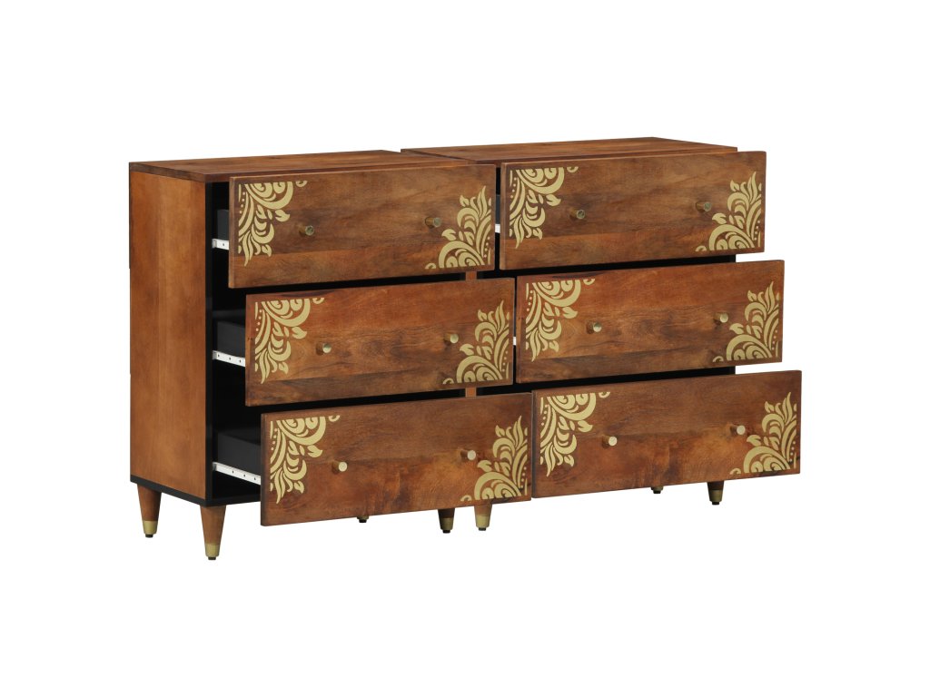 Masivní konstrukce z magnovníkového dřeva Tato komoda je důkazem kvalitního řemeslného zpracování. Je vyrobena z magnovníkového dřeva, které je silné a má krásné letokruhy. Kombinace s inženýrským dřevem zajišťuje její odolnost a elegantní vzhled vhodný pro moderní domovy. Materiály vydrží každodenní používání, takže komoda zůstane středem pozornosti v každé místnosti. Luxusní mosazné akcenty Elegantní mosazné úchyty a nohy přidávají komodě na luxusu, zvyšují její moderní vzhled. Zlaté akcenty vytvářejí hezký kontrast s přírodními tóny dřeva, což dodává celku sofistikovanost. Tyto designové detaily jsou nejen hezké na pohled, ale i praktické, usnadňují přístup k obsahu. Praktický úložný prostor Komoda nabízí chytrý úložný prostor, jak v otevřených, tak za zavřenými dveřmi. Vnitřní uspořádání je skvělé na organizaci věcí, od jídelního nádobí po dekoraci, což vám pomůže udržet prostor v čistotě a pořádku. Moderní styl Tato komoda spojuje minimalistický design s akcenty z mosazi a perfektně vystihuje moderní styl, který se vyznačuje jednoduchostí a čistými liniemi. Její diskrétní vzhled se přizpůsobí různým stylům, od skandinávského designu po živější, eklektický styl. Snadná údržba Udržet komodu v dokonalém stavu je snadné. Stačí ji občas otřít suchým hadříkem a udržíte ji stále krásnou. Snadná údržba to dělá praktickou volbou, která bude stále zdobit váš domov i po dlouhé době.- Barva: Medová hnědá