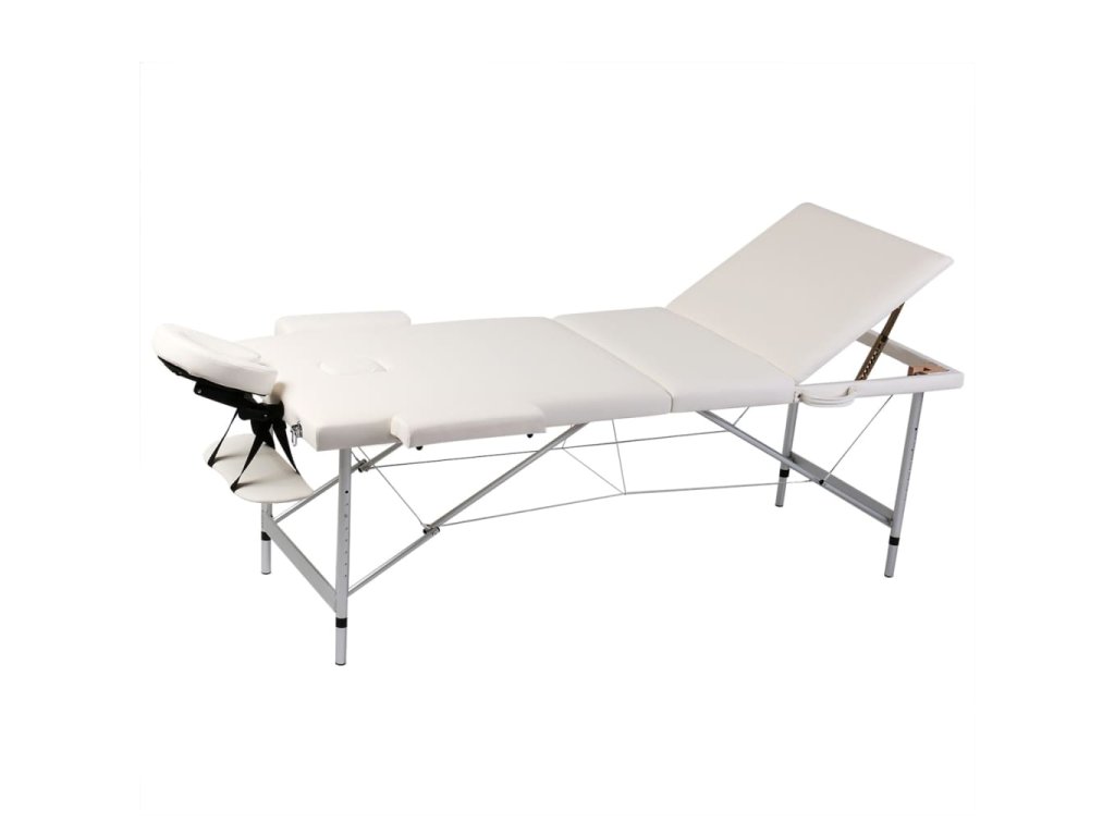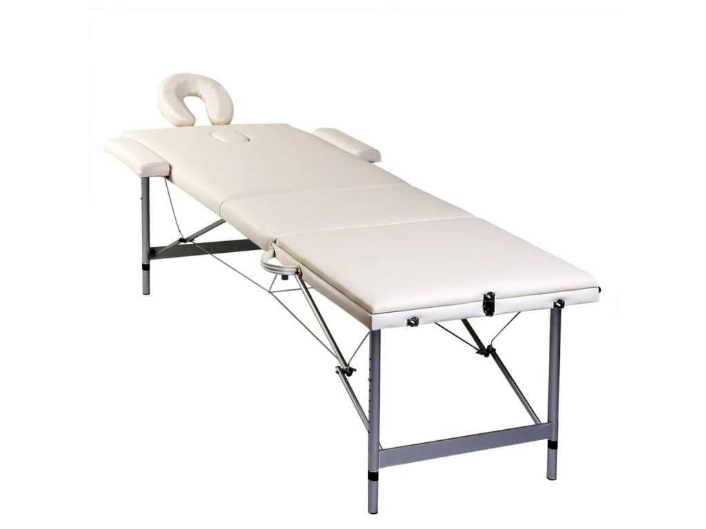 Krémově bílý skládací masážní stůl se 3 zónami a hliníkovým rámem
