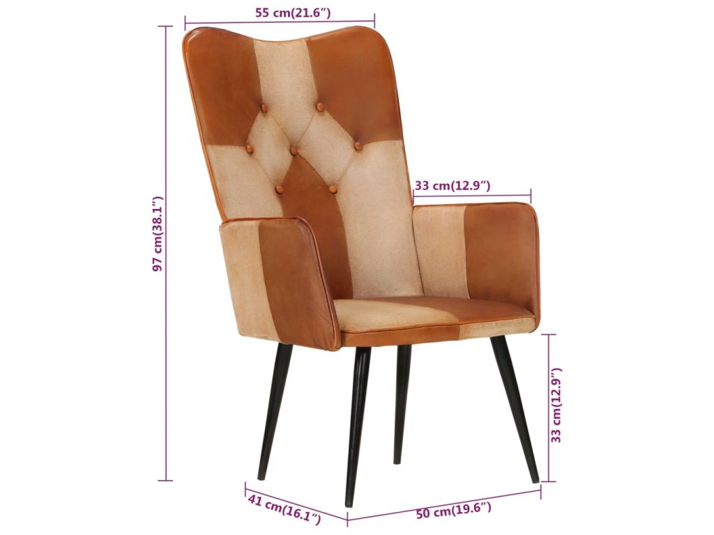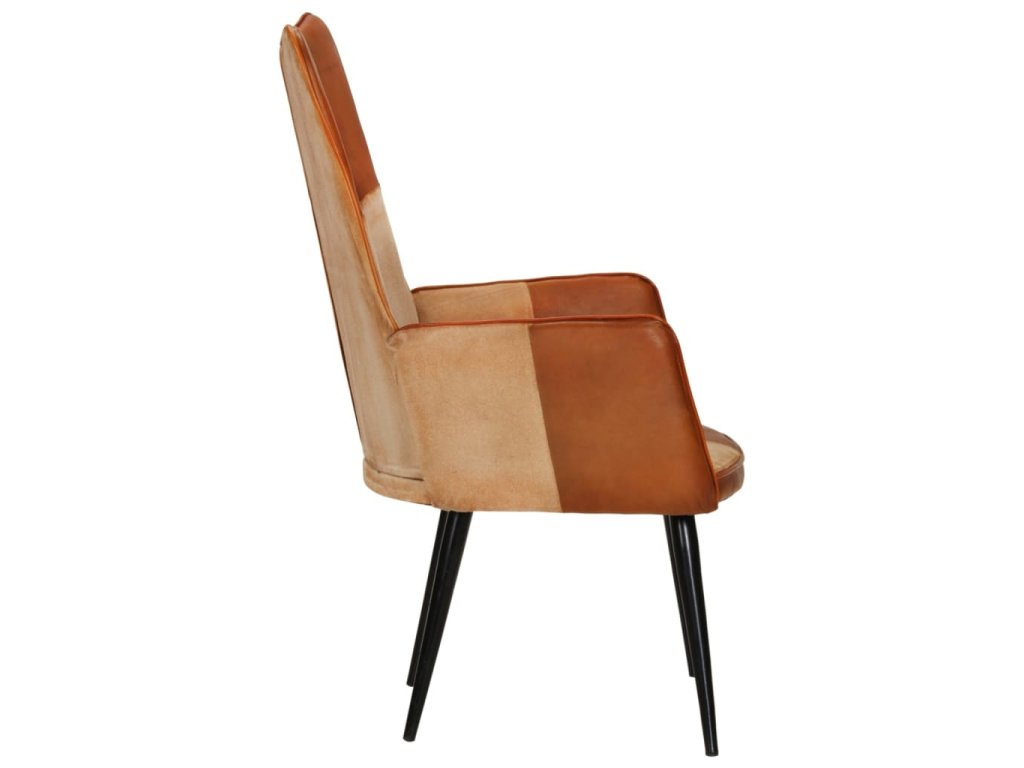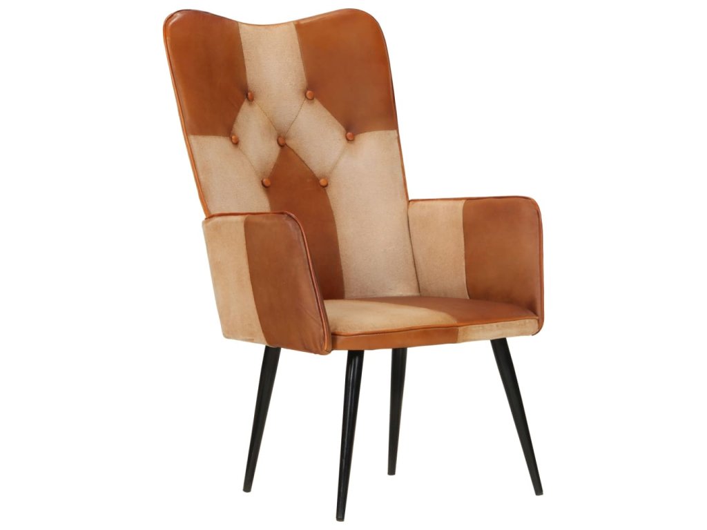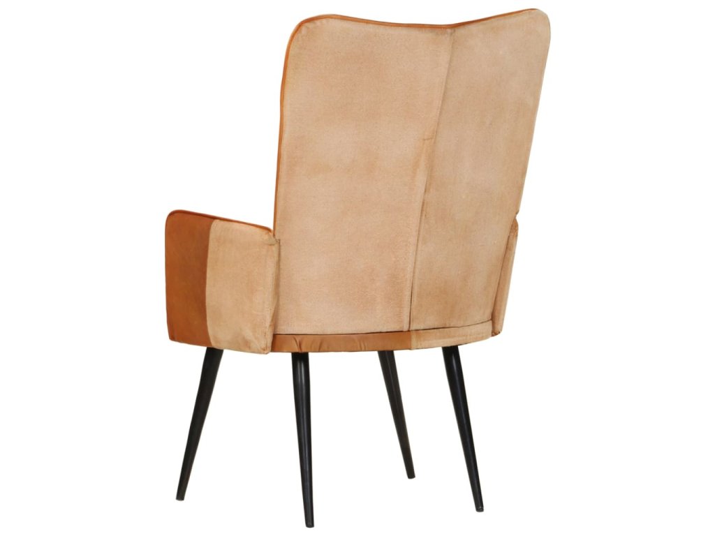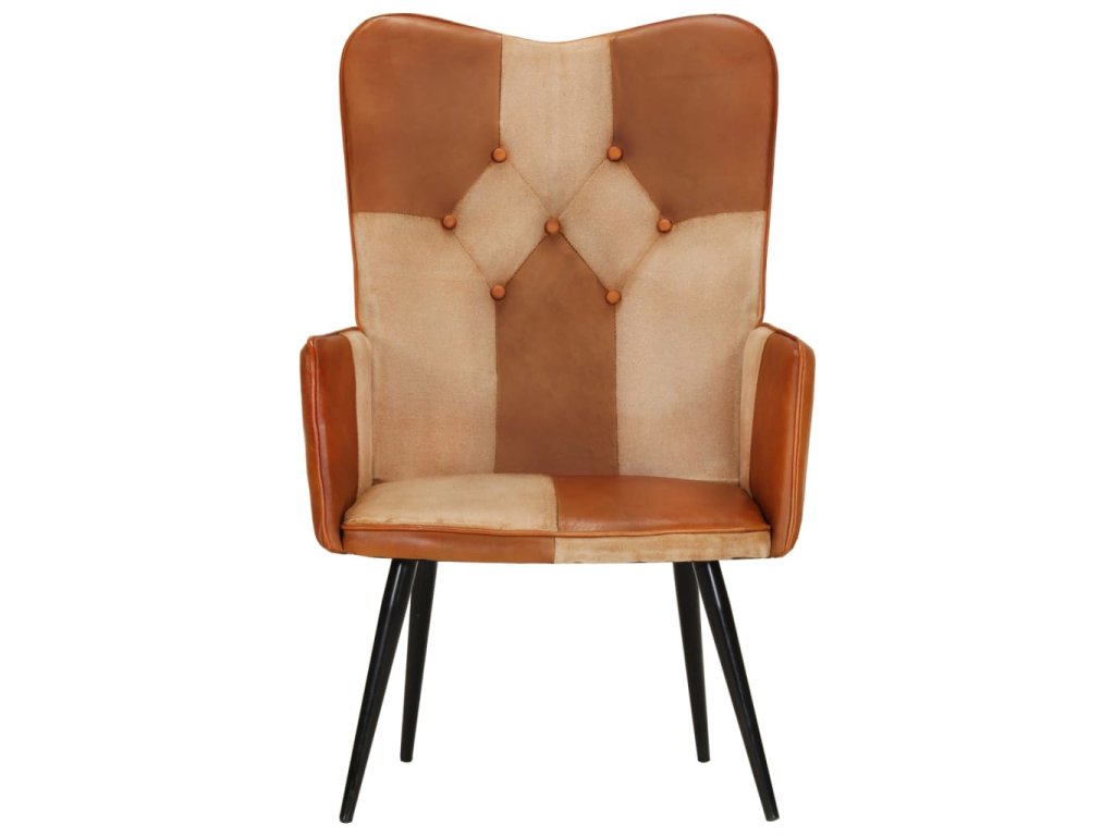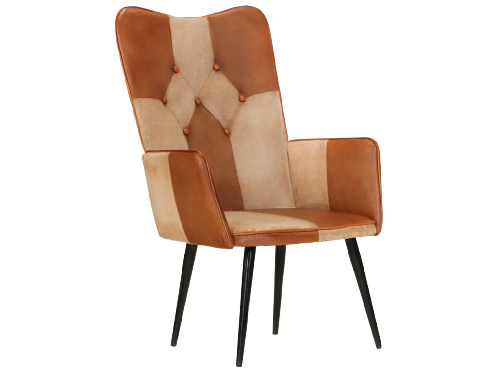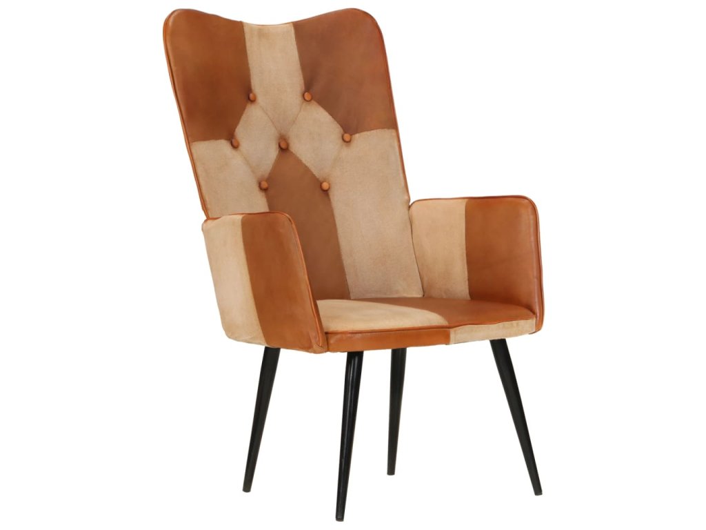 Křeslo s opěradlem hnědé a krémové pravá kůže