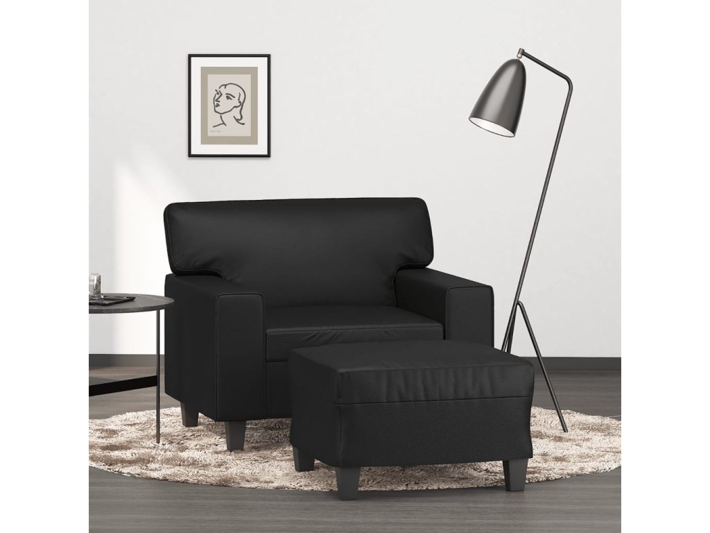 Křeslo s podnožkou černé 60 cm umělá kůže