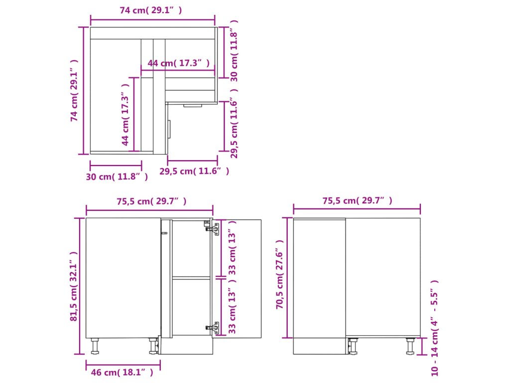 Kuchyňská linka "Lyon" šedá sonoma 75,5x75,5x81,5 cm, z umělého dřeva