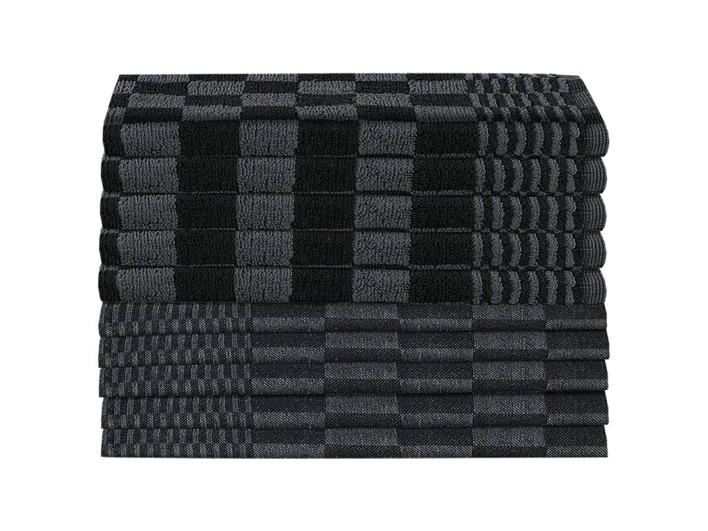 Kuchyňské utěrky 10 ks černé a šedé bavlna