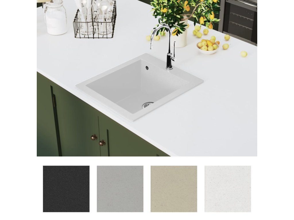 Kuchyňský dřez je vyrobený z kvalitní žuly a je vysoce odolný proti poškrábání a nárazům. Odpuzuje také nečistoty a je odolný vůči znečištění, proto se snadno čistí. Tento kuchyňský dřez je tepelně odolný až do 280 °C.